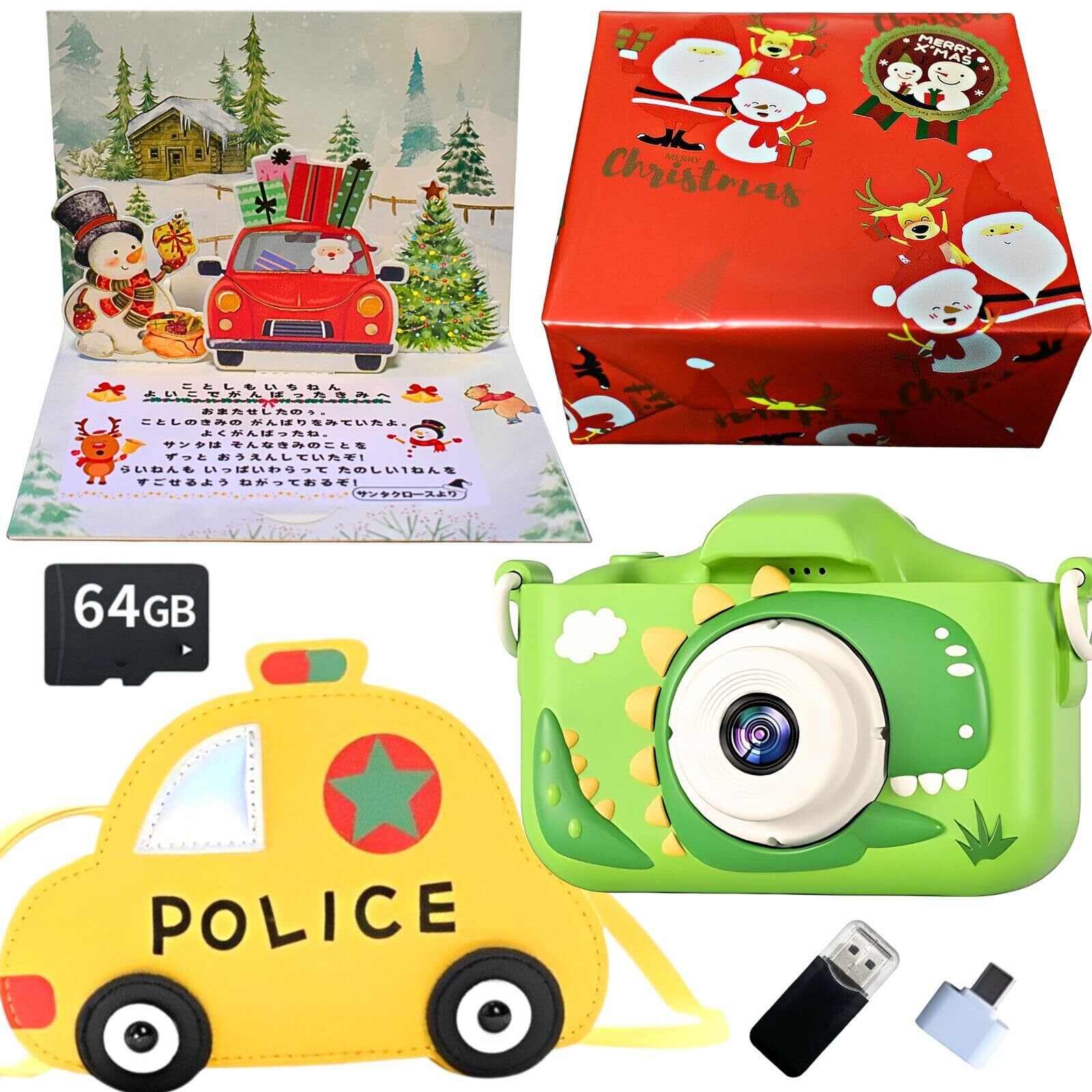【在庫処分】【64GB ポシュエット付き】キッズカメラ トイ 子供用 ゲーム機能 音楽プレーヤー 8倍ズーム ひらがな説明書付き 恐竜 男の子 プレゼント popoma (04.クリスマスラッピング, イエロー)