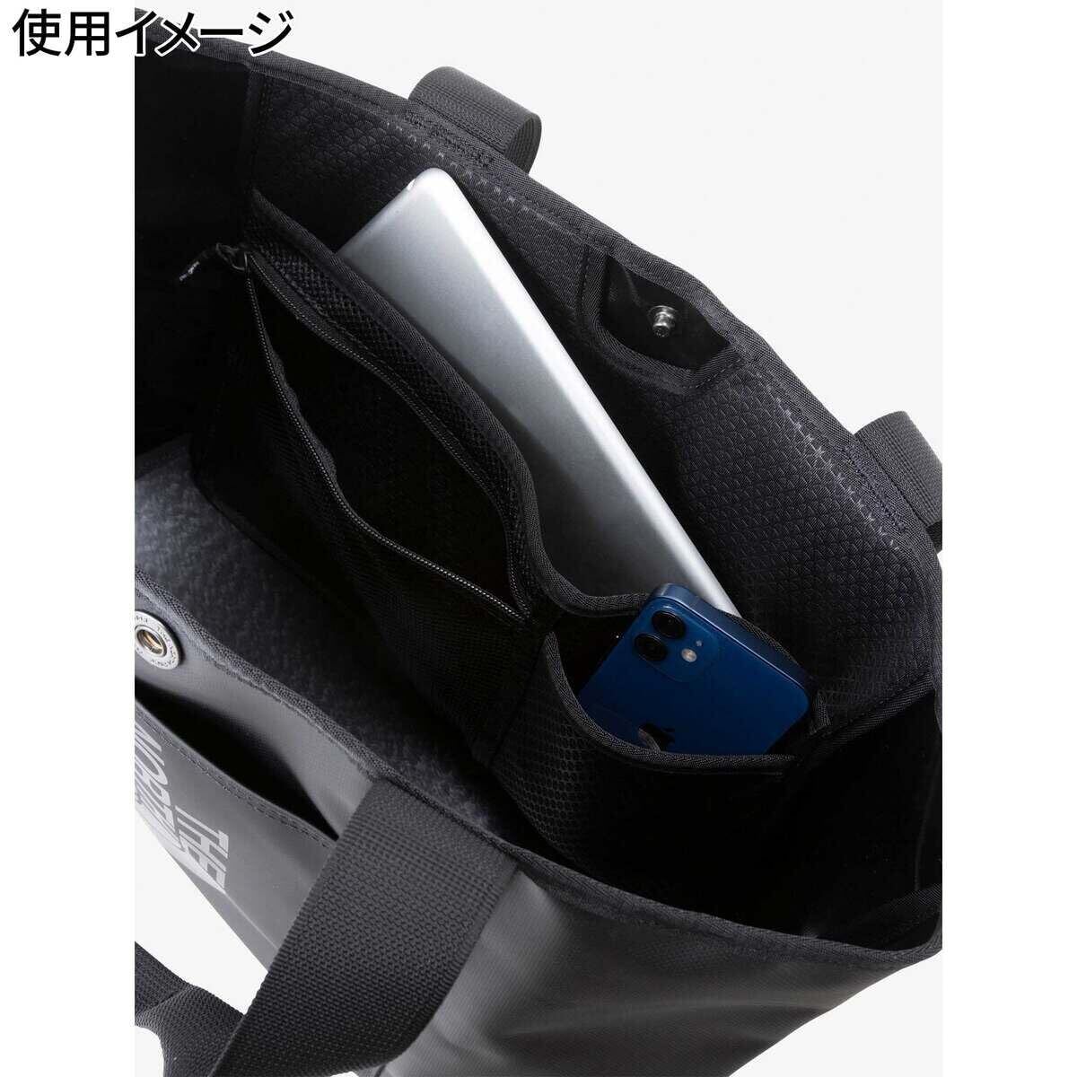 【機能説明(Function)】散らかりがちなトートバッグの中身をスマートに収納できる吊り下げ式オーガナイザーポケット/水にも強いタフなBC素材/底面の型崩れを防止するパネル/物を入れてなくても自立する構造