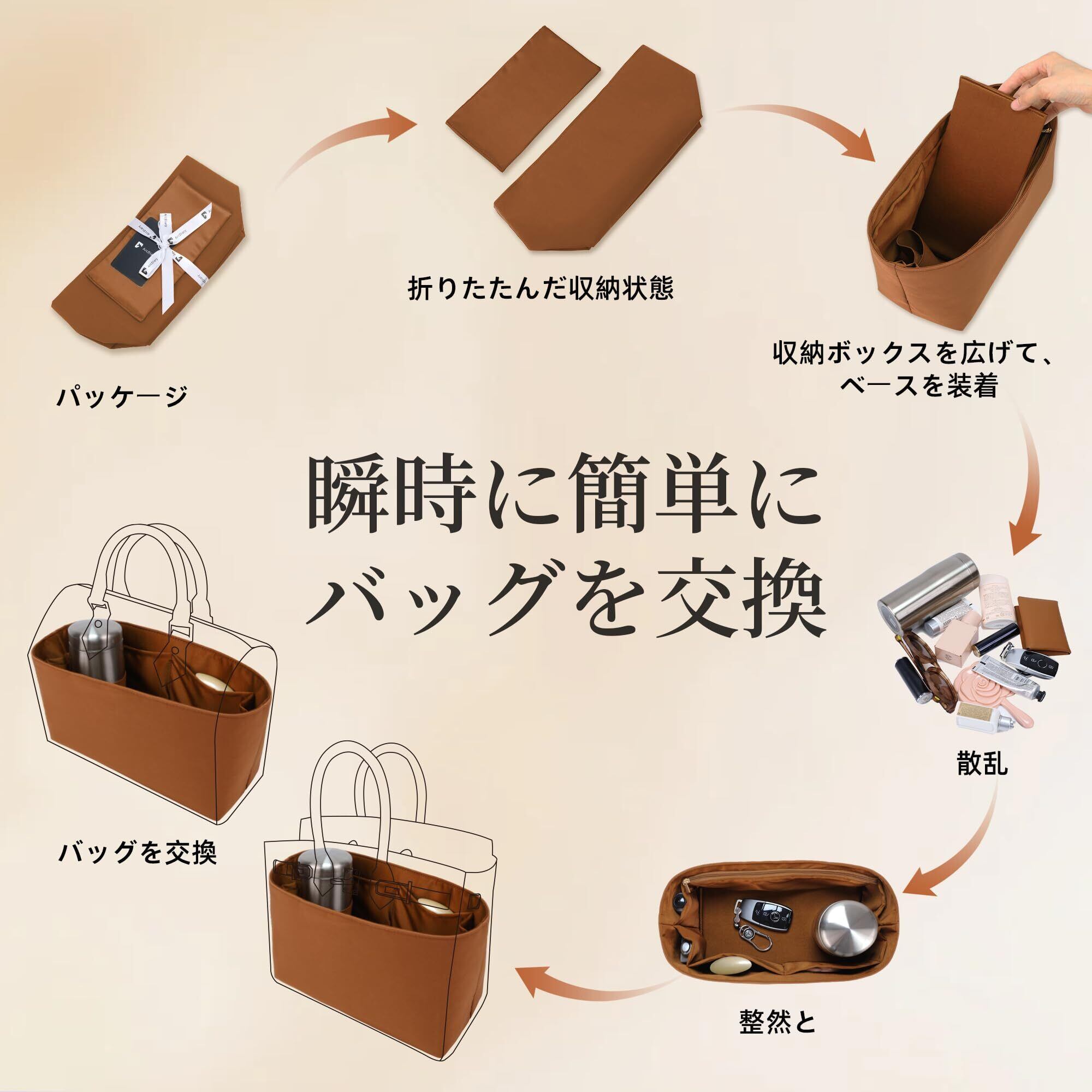 【1 つに複数パック対応できる】このインナーバッグはたくさんなバッグタイプに対応しています。大容量のトートバッグ、エレガントなハンドバッグ、それともリラックスしたショルダーバッグでも、丸みを帯びたコーナーデザインにより自然にフィットし、完璧にマッチして 1 つのバッグインバッグで実用的です。速くカバンを取り替えられるため、カバンの中身を再整理する必要がありません。複数ご愛用バッグ収納の最高のパートナーです。