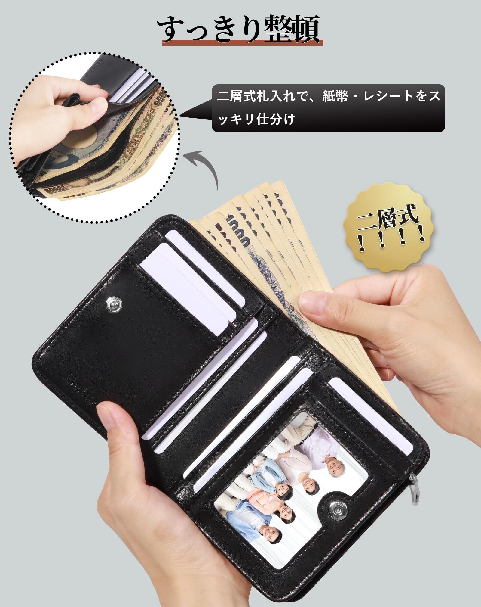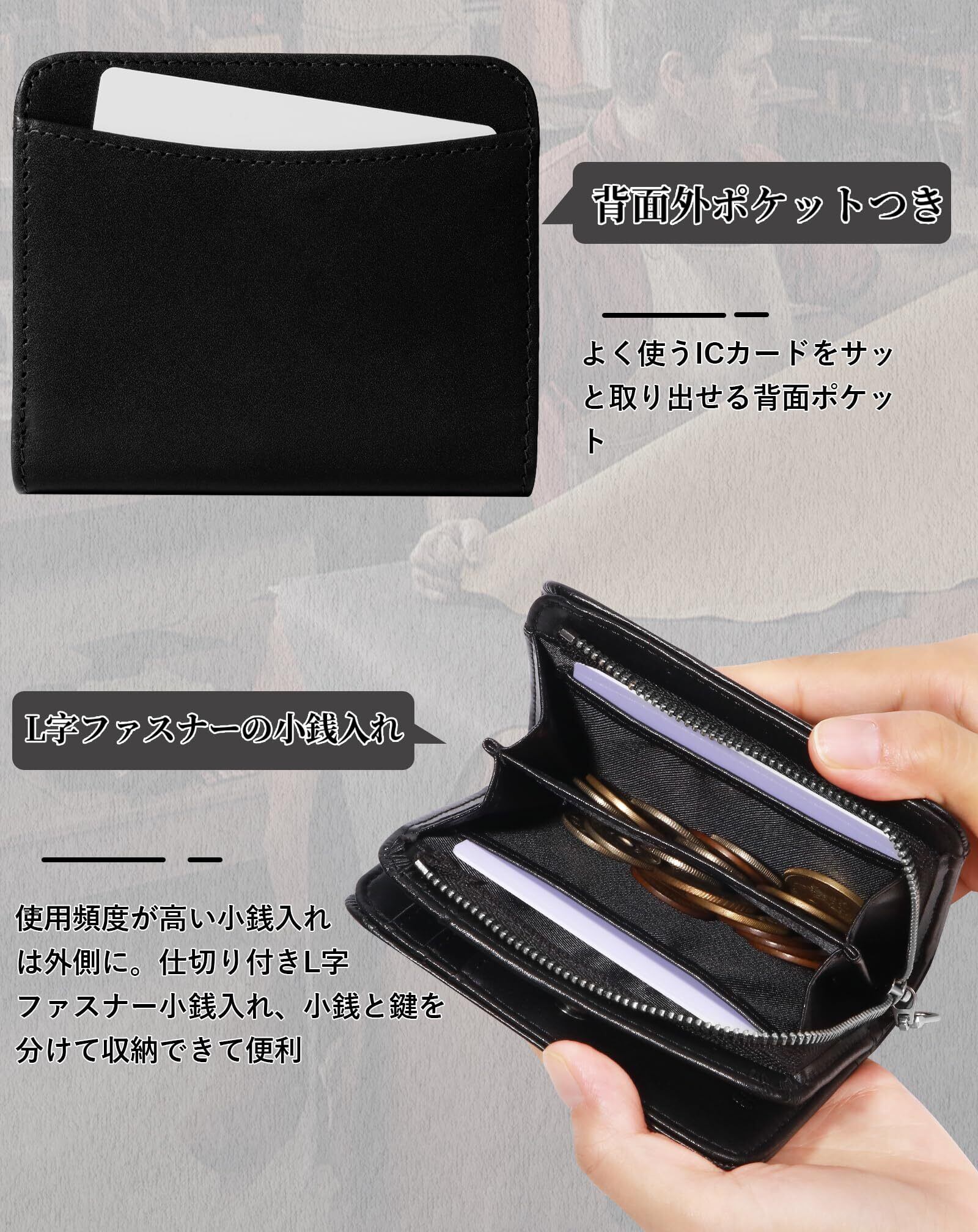 【メンズ財布仕様】:(素材 ):栃木 レザー;(サイズ):11.3*9.7*3cm;(仕様):カード入れx15( IDウィンドウ×1)、札入れx2(現金とレシート/領収書を分けて管理できます)、外ポケットx1(ICカード対応)、L字ファスナー小銭入れ× 1(コイン出し入れ簡単)。