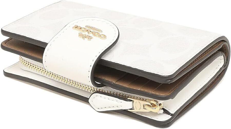 [OIGATSUO] レディース 二つ折り財布ラグジュアリー シグネチャー レザー ミディアム コーナー ジップ ウォレットア 通販 L型 財布ウトレット品 (グレイシャーホワイト) [並行輸入品]