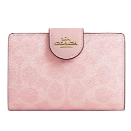 【特価セール】[Visco Aireet] レディース 二つ折り財布 通販 L型財布シグネチャー コーテッド キャンバス ミディアム コーナー ジップ ウォレット アウトレット品 (ピンク) [並行輸入品]