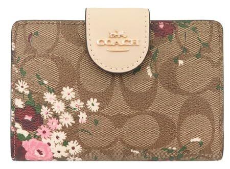 上品な花柄デザインのニつ折り財布が入荷。小振りでカラフルな花をプリントした女性的なデザイン。さり気なく見えるシグネチャ-柄のおかげで,大人の雰囲気が、より-層あふれ出ております。センタ-のロゴも、高級感があっていいですね。コンパクトだけと、収納もピカイチ。
