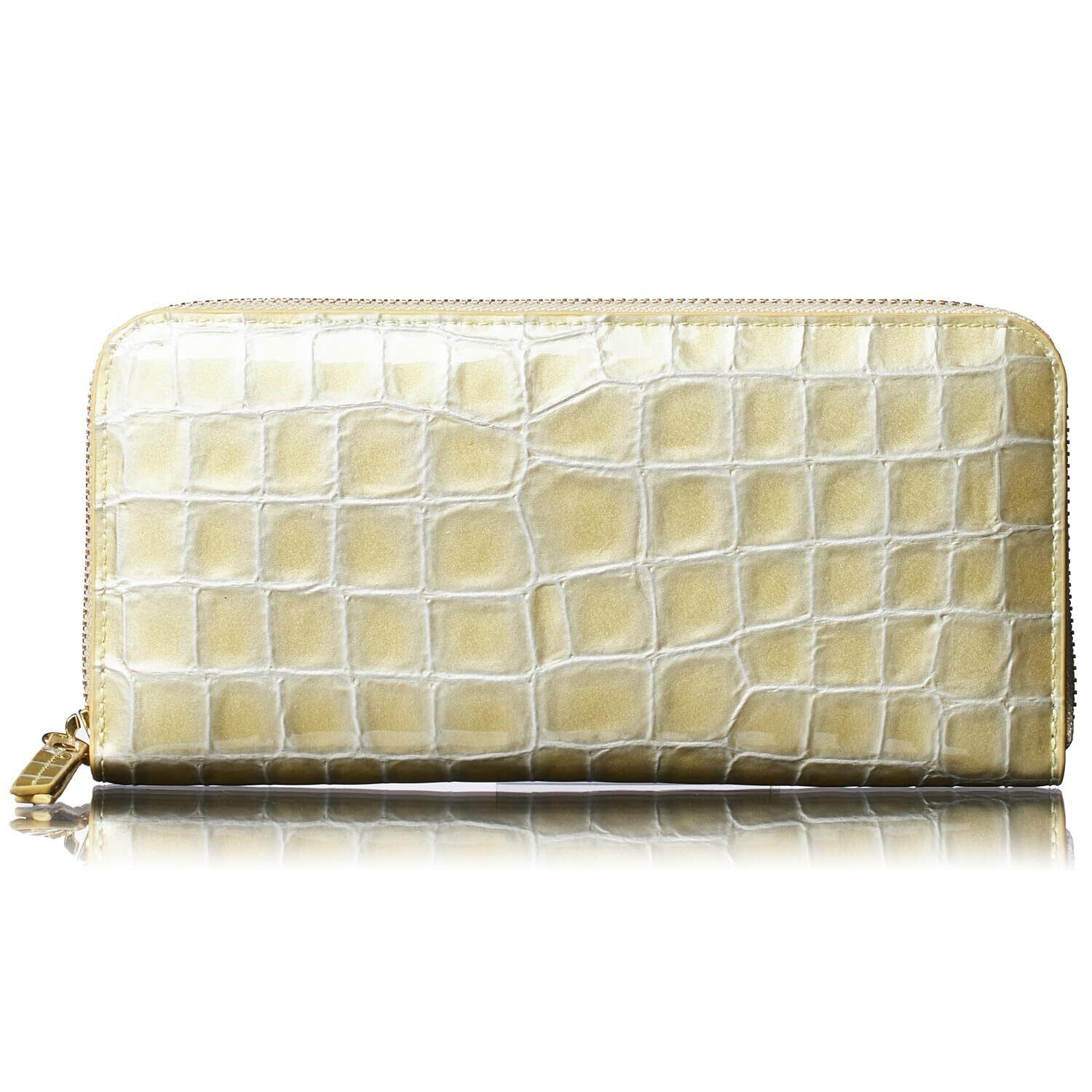 【新春セール】[FRANCK ROSSINI] イタリア 製 牛革 enamel croco レディース 長財布 縦型 カード ホルダー 20枚収納可 母の日 プレゼント ギフト 箱 入り(Gold)