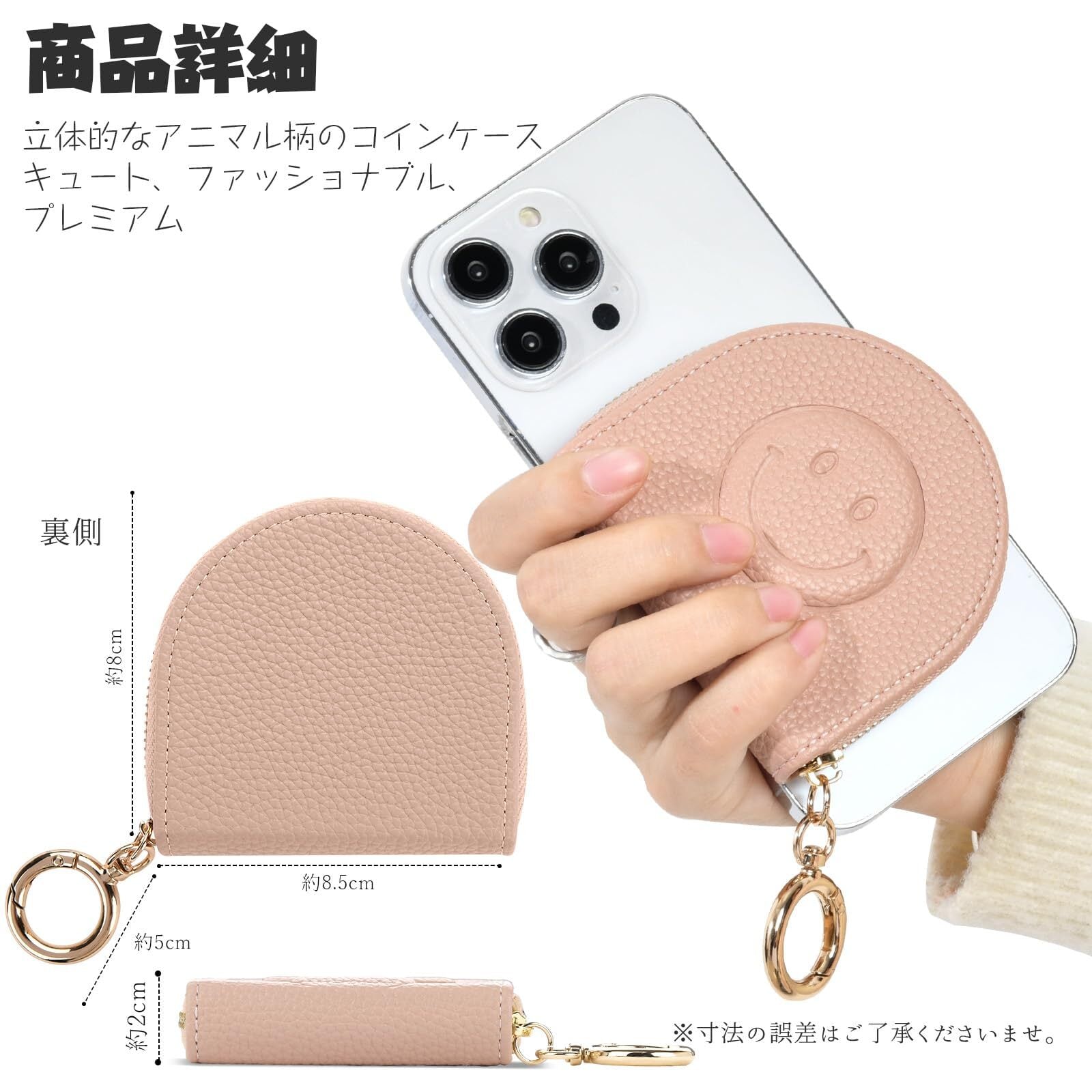 小銭入れ レディース コインケース ミニ財布 コンパクト 手持ち キーリング付き 小銭ケース 大容量 小さい財布 可愛い おしゃれ 小物入れ 小さい レザー 立体的なキャラクターデザイン 通勤 通学(ベージュピンク)