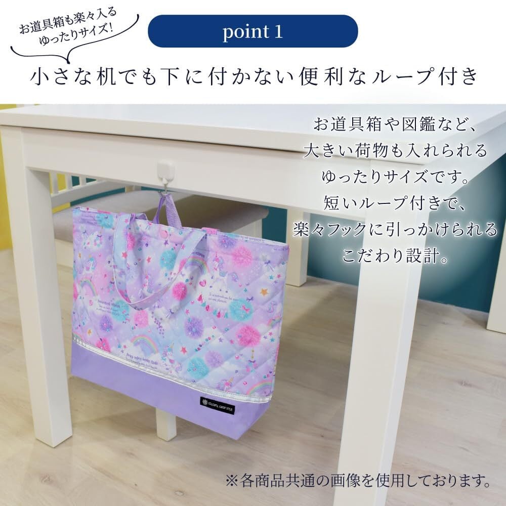 便利な内ポケット付き、机に掛けても底につかないループ付き。内ポケットにパスケースや文房具など小物を入れることでサッと取り出しやすくなり、レッスンバッグの中身もすっきり整頓できます。<br>小学校や幼稚園、保育園からの指定も多いループ付き。机のフックに掛けても底につかず、教室の机が低くても安心です。