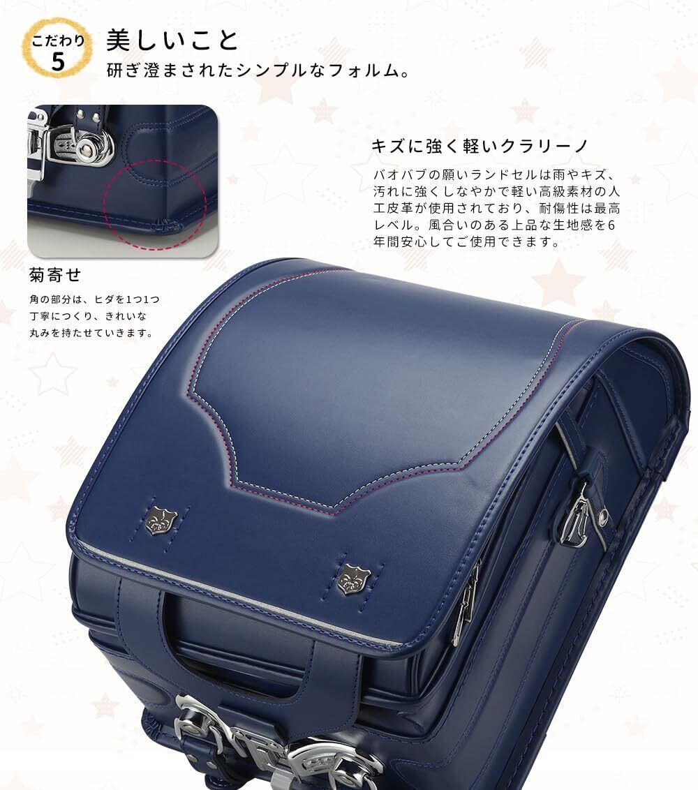 [バオバブの願い] 技術型 ランドセル 男の子 軽量かつ頑丈 ワンタッチロック A4フラットファイル対応 手縫い japanese schoolbag Bab-RnG026 (ブルー)