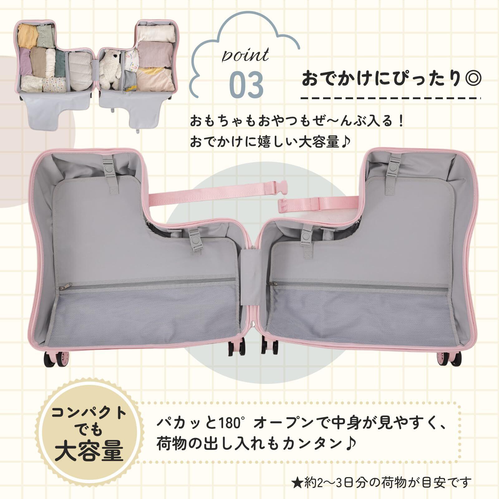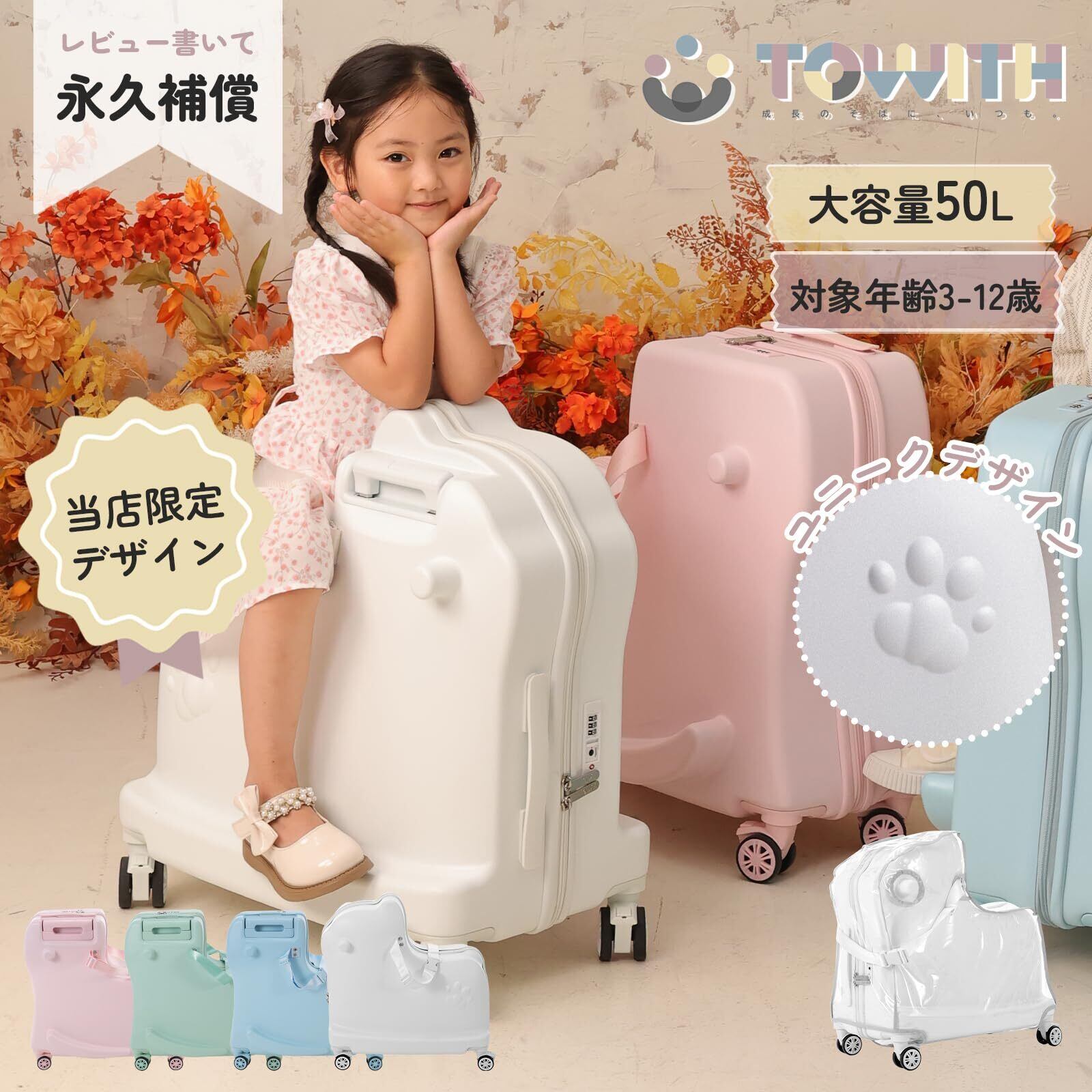 【在庫処分】[Towith] 乗れるスーツケース 子供 キャリーケース ベーシック キャリー 乗れる スーツケース キッズキャリー 子供用 かわいい 軽量 大容量 便利 TSAロック 静音 安心 安全 旅行 お出かけ ギフト プレゼント 2025年 (ピンク)