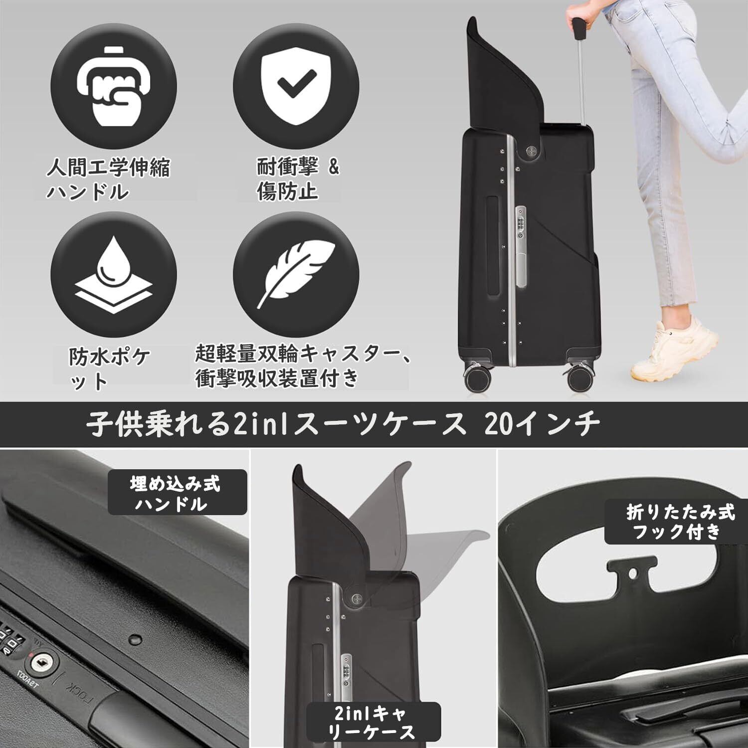 [ChicCarry] 子供が乗れるキャリーケース 機内持ち込み キャリーバッグ 子供 乗る 軽量 大容量 キッズ 乗れる スーツケース 耐衝撃 TSAロック ストッパー付き ダブルキャスター 子連れ 旅行 帰省 ブラック