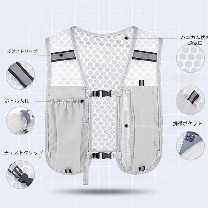 ランニング リュック 120g 超軽量 ハイドレーションパック 通気 防水 携帯電話と水筒専用ポケット トレラン ザック 反射ストライプ ジョギング 登山 箱根駅伝 自転車 サイクリング 男女兼用