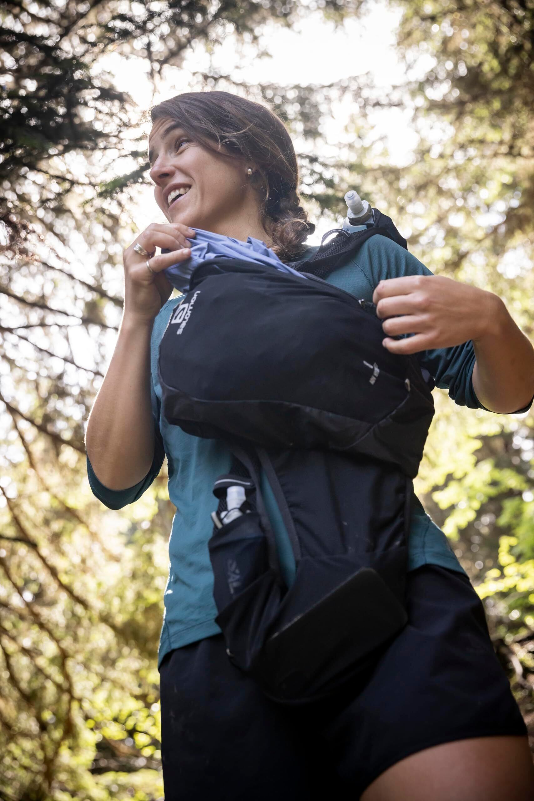 すばやい水分補給 : 500ml のソフトフラスク 2 本を収納できるため、喉が渇いたらサッと取り出し、すぐに水分を補給できます。エナジージェル用の大きなポケットも付いています。