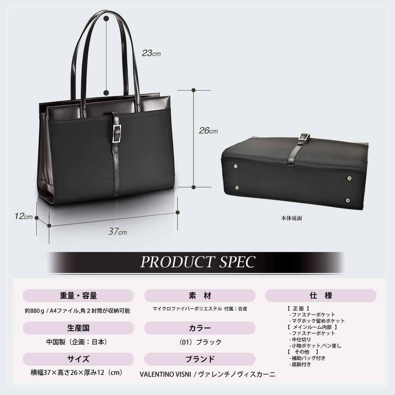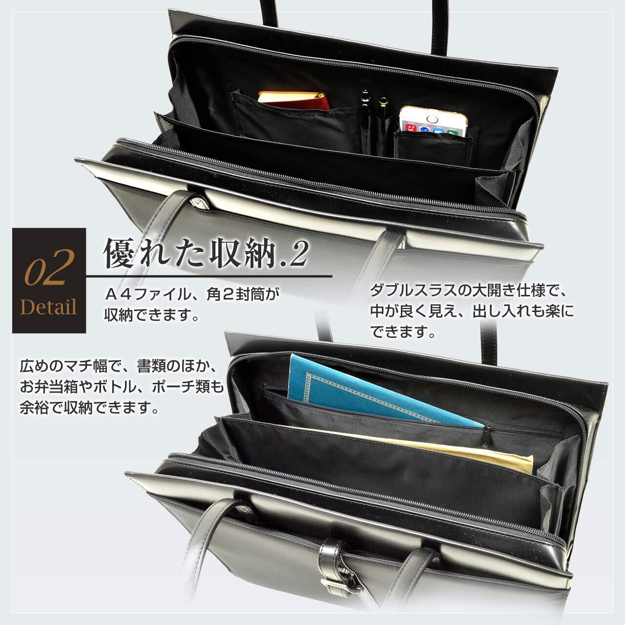 [平野鞄] トートバッグ レディース ビジネスバッグ A4対応 自立 軽量 底鋲付き 就活 通勤 通学 面接 営業 オフィス ブラック