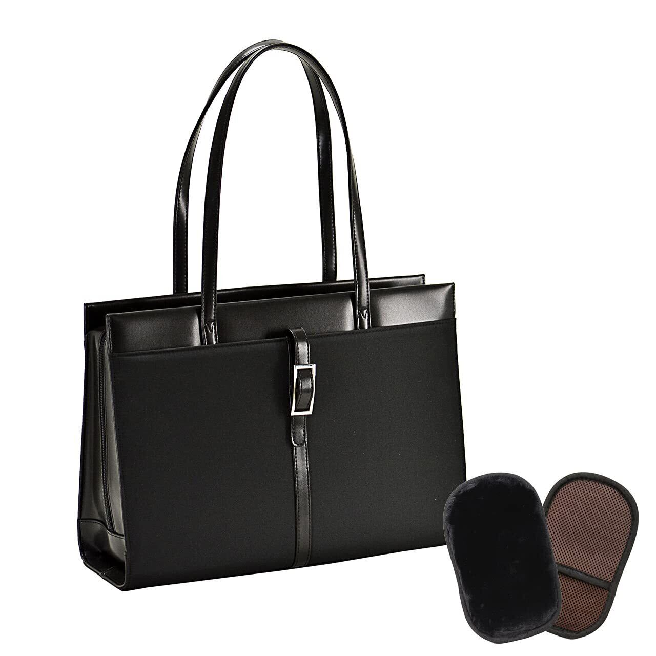 フォーマルから普段使いまで|シンプルな無地ブラックデザインで、面接やフォーマルシーンにも対応。オフィスカジュアルにも馴染み、汎用性の高いバッグです。