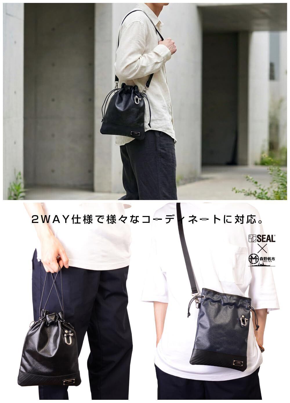 森野帆布 x SEAL 巾着 ポーチ サコッシュ ショルダーバッグ 男女兼用 2WAY 海上自衛隊 採用帆布