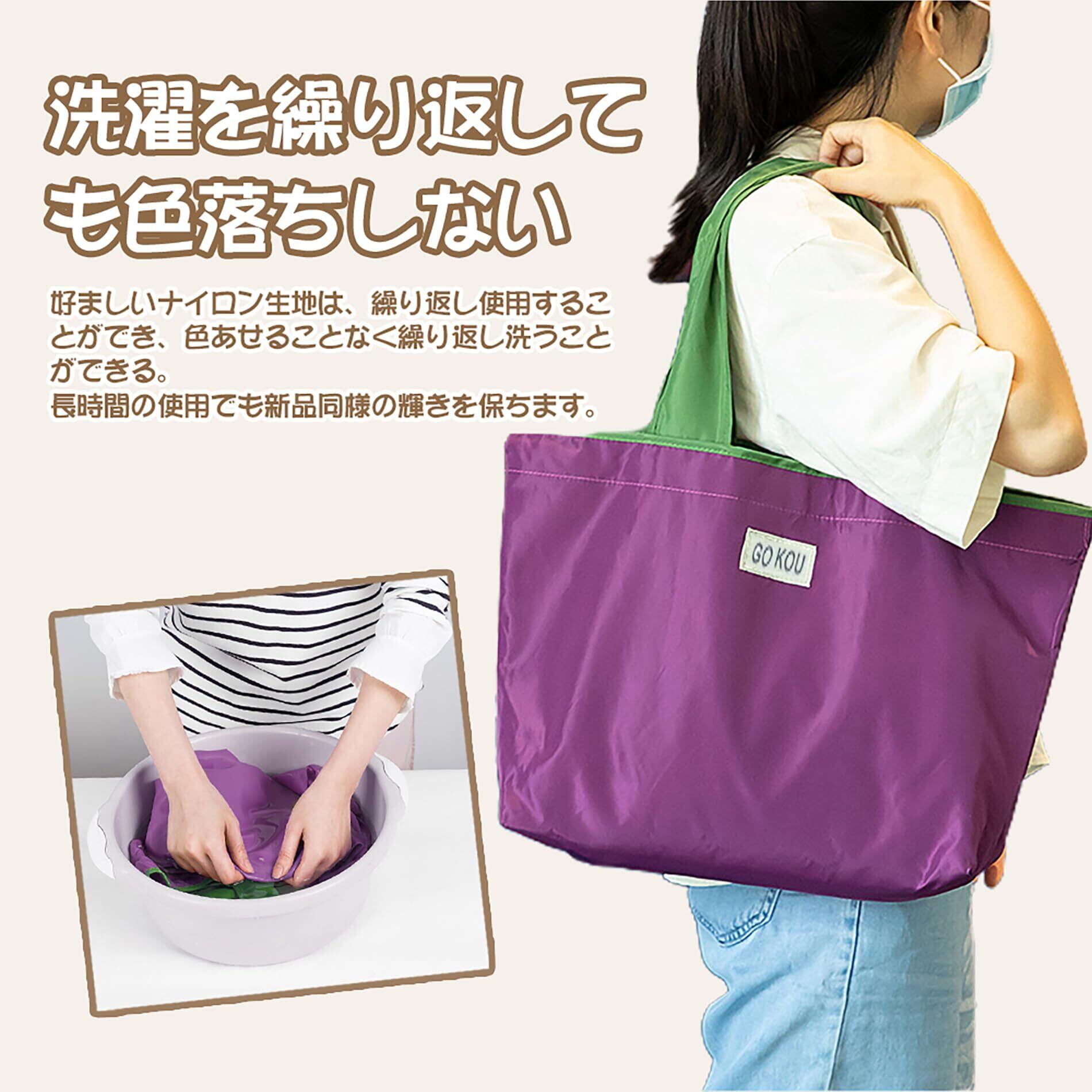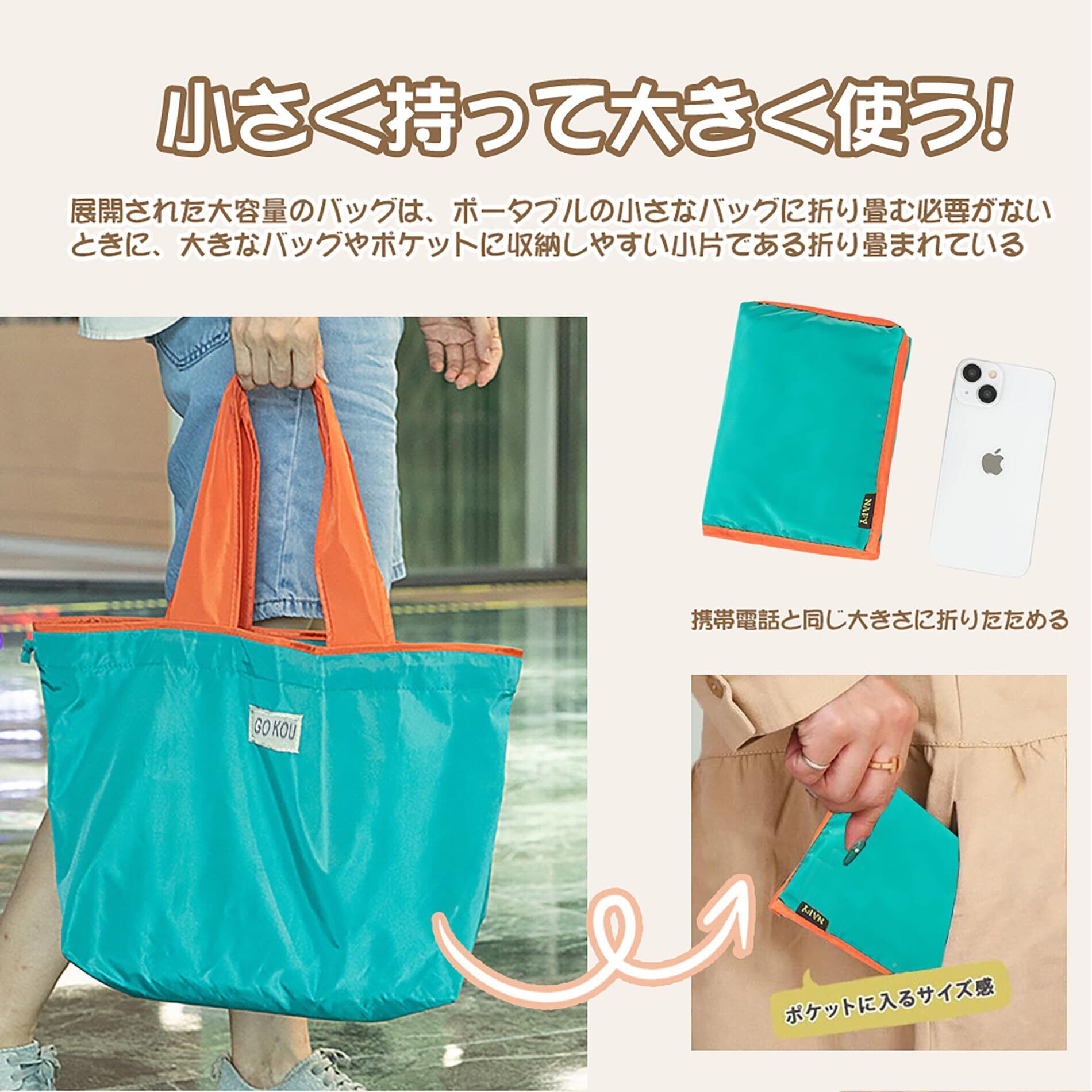 [GOKOU] 同色MとLの2点セット エコバッグ コンビニ コンパクト バッグ 買い物バッグトート ショッピング スーパーマーケット 折りたたみ 大容量 防水 軽量 買い物袋 収納 おしゃれ メンズ レディース レジャーバッグ 無地