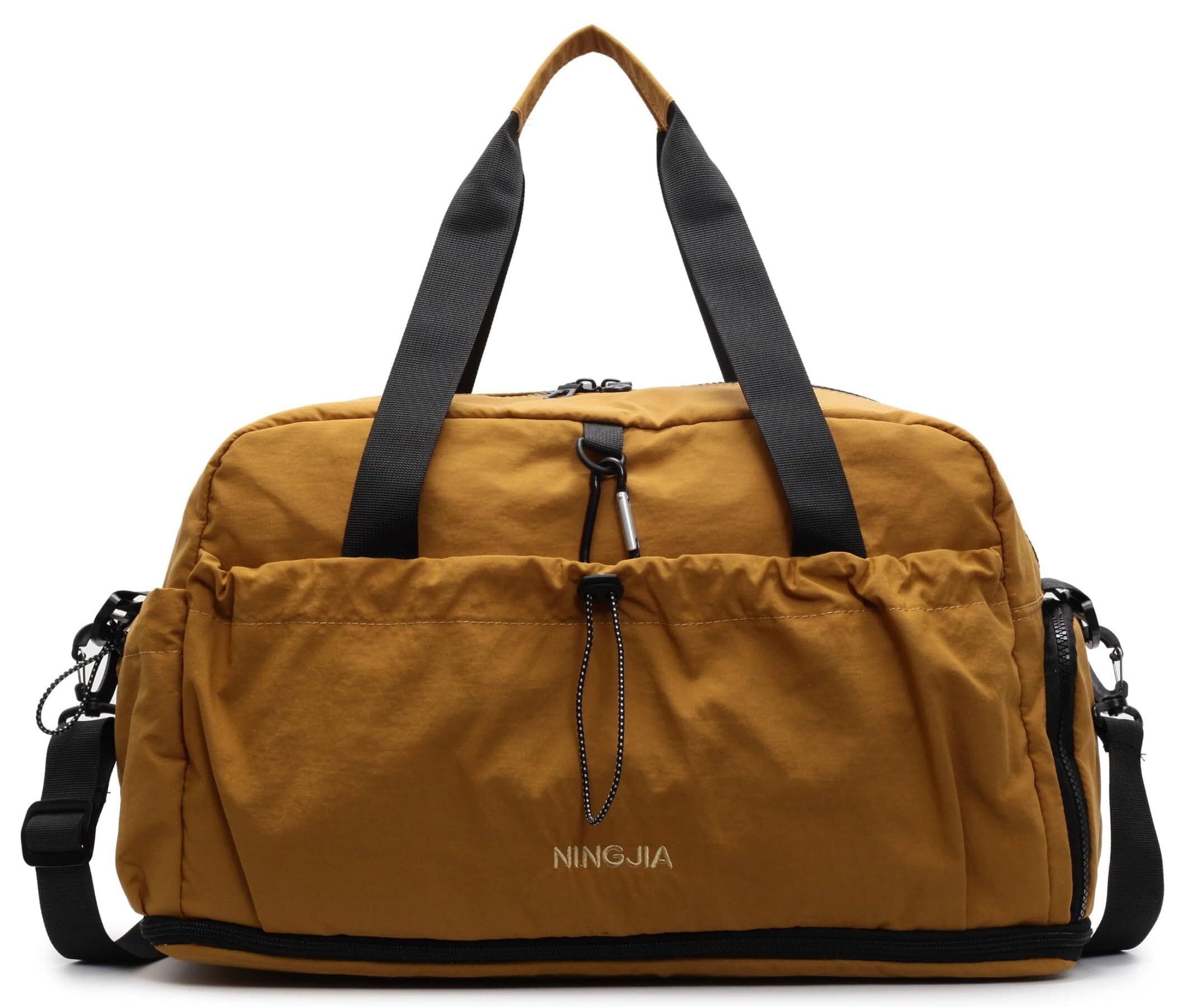 Schkleier スポーツバッグ ジムバッグ 男女兼用 シューズ収納: トート ショルダー 手提げ シンプル 撥水加工 多収納 軽量 修学旅行 キャンプ トラベル ゴルフ 通勤通学 出張 アウトドア 一泊二日 旅行グッズ マザーバック イエロー
