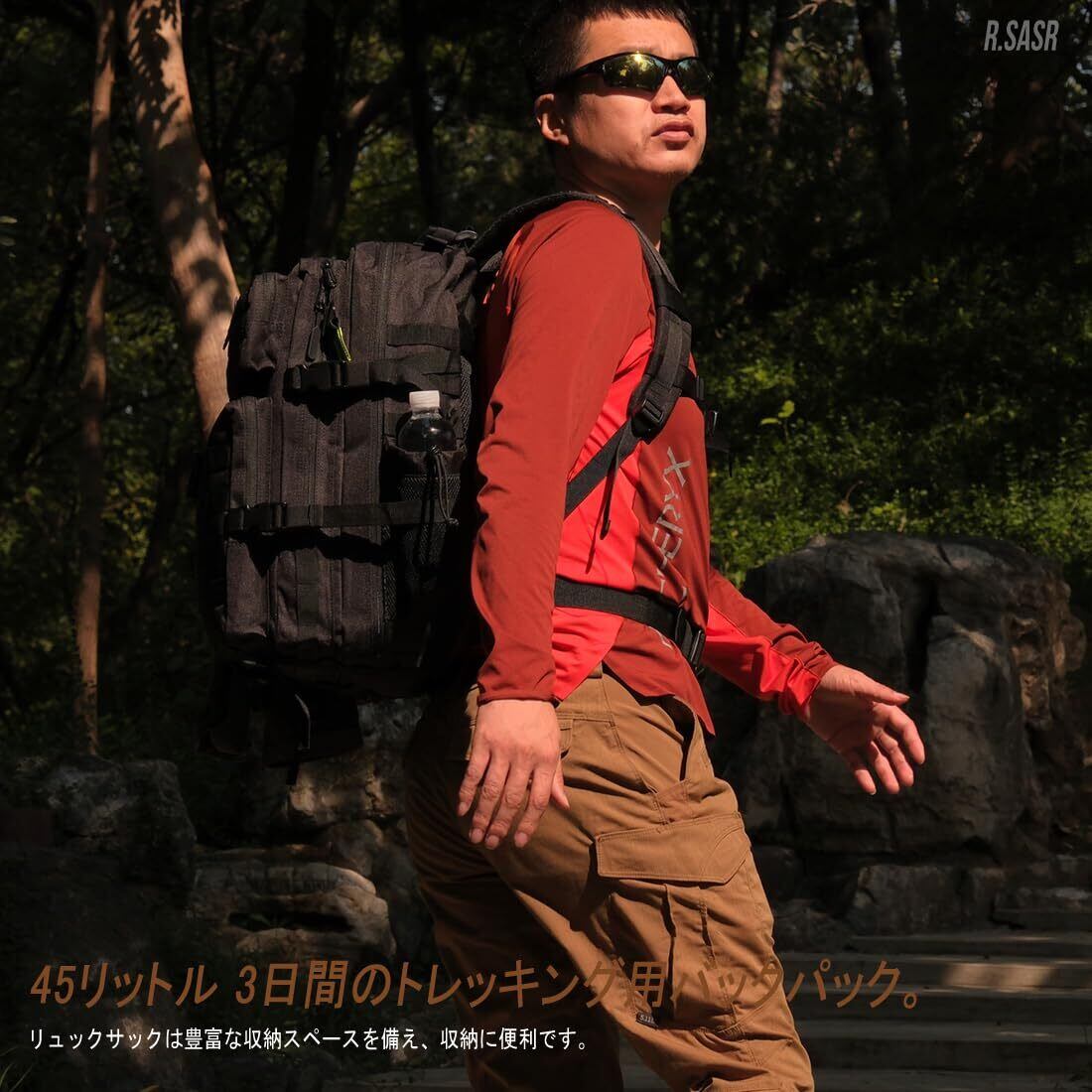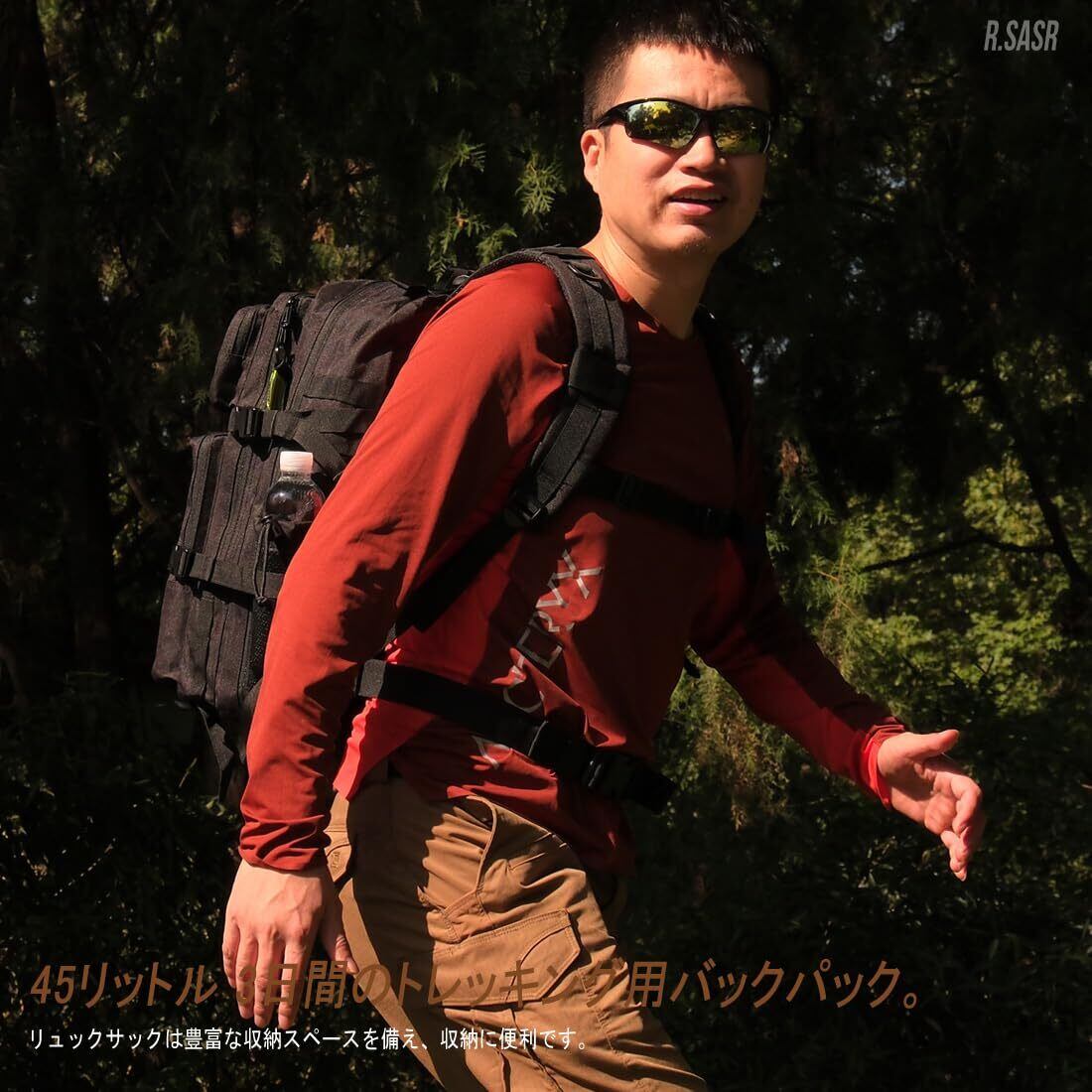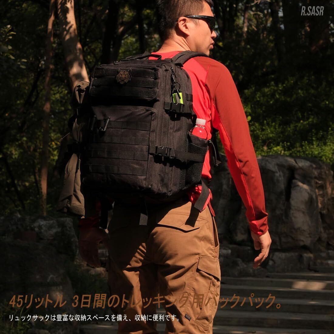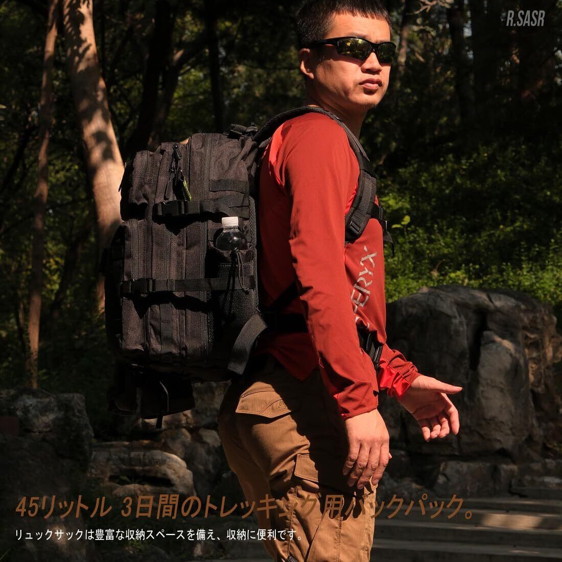 [R.SASR] 45リットルミリタリーリュックサック、タクティカルバッグ、登山アウトドアキャンプハイキングバックパック