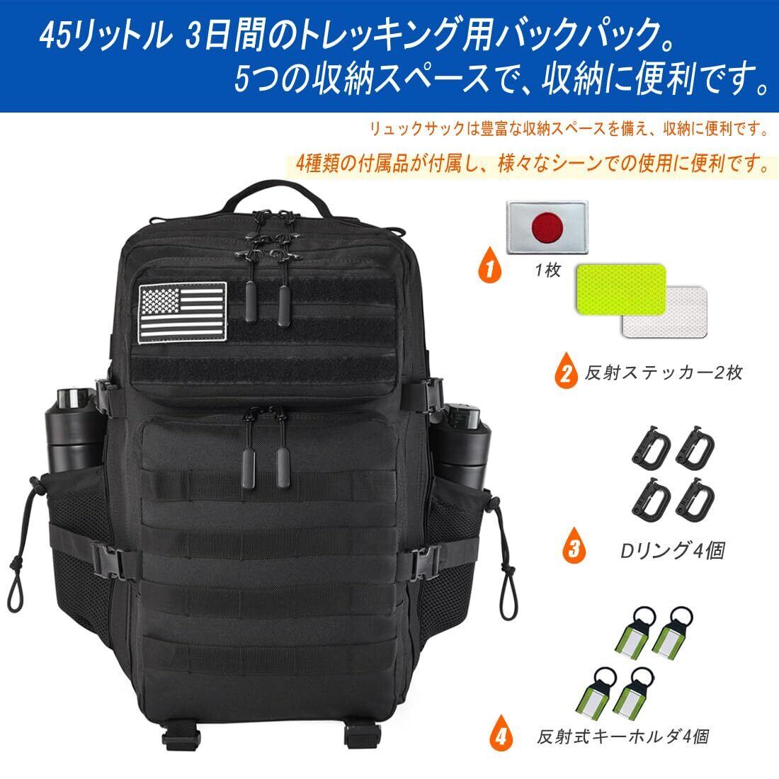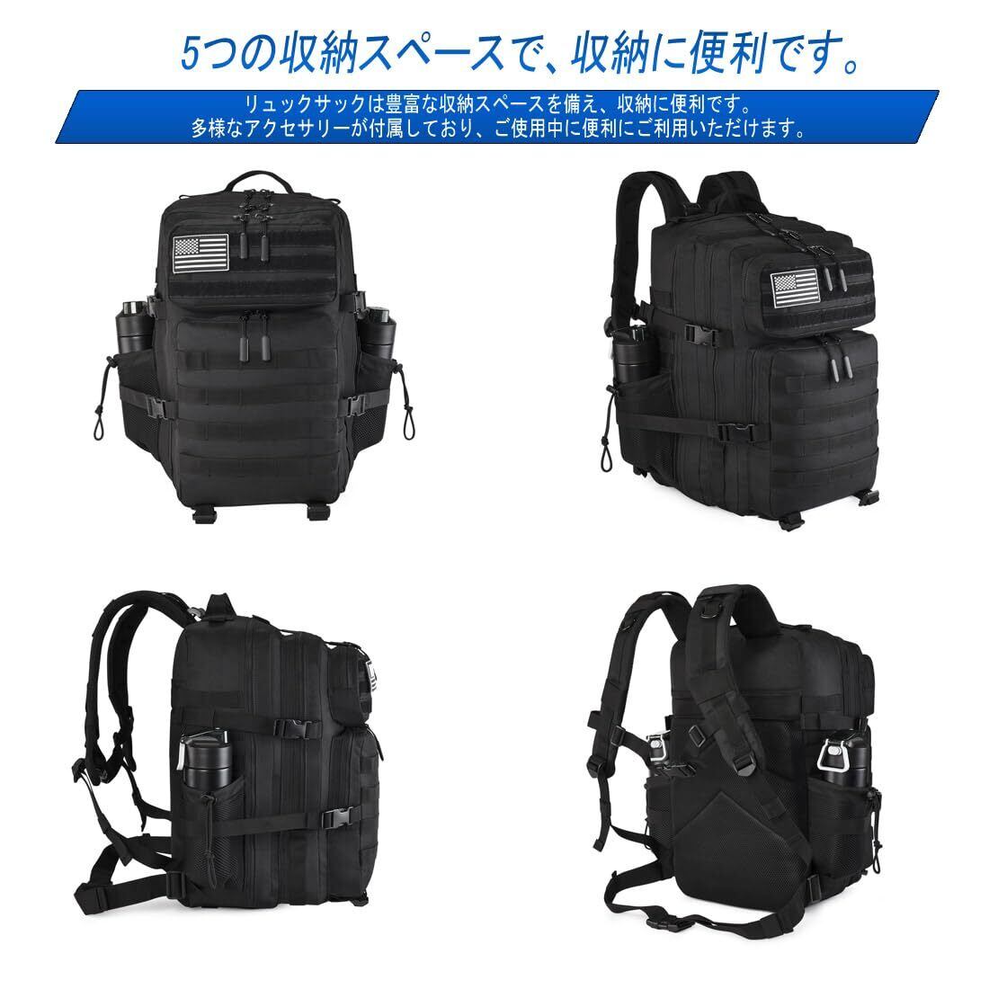 スペース:ミリタリーリュックサックのサイズは49cm×30cm×30cmで、容量は45リットル。 内部に複数の収納コンパートメントがあり、アウトドア用品をたくさん収納できるほか、日常的な旅行のニーズにも応えます。 フィットネス、アウトドア旅行、ハイキングなどのアウトドア活動に最適です。