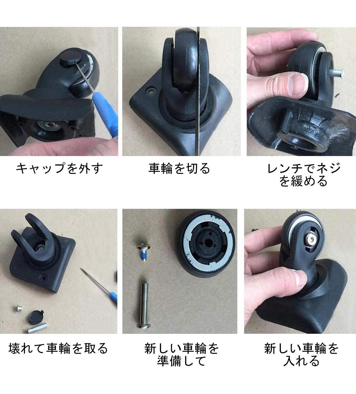 【車輪交換と修理用】ご愛用のスーツケースやキャリーバッグ などの車輪が劣化すると、この車輪用修理キットで簡単に交換できます。初心者でも簡単に取り付けます。