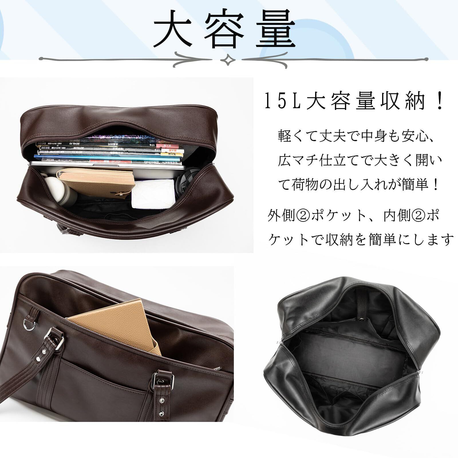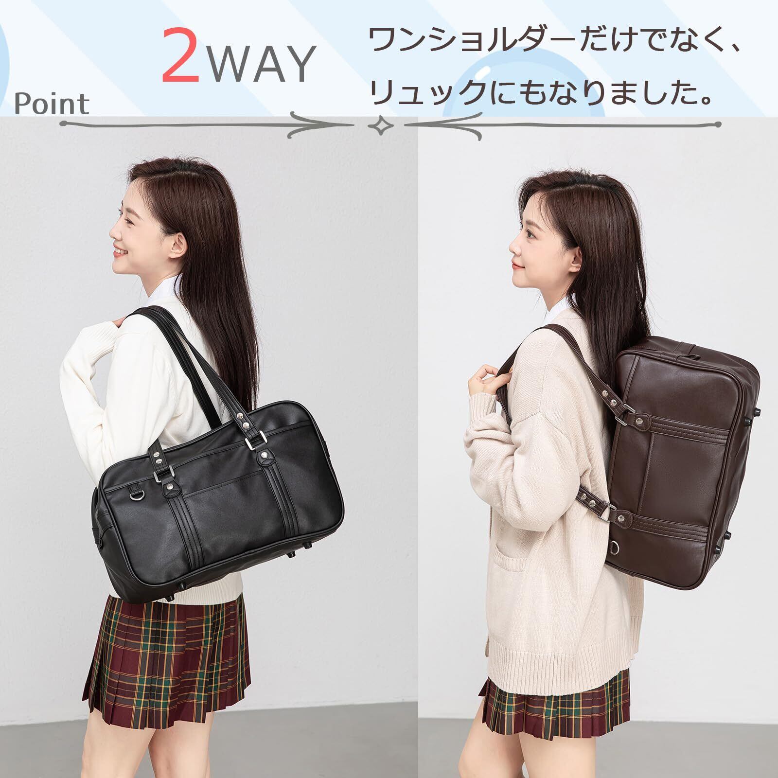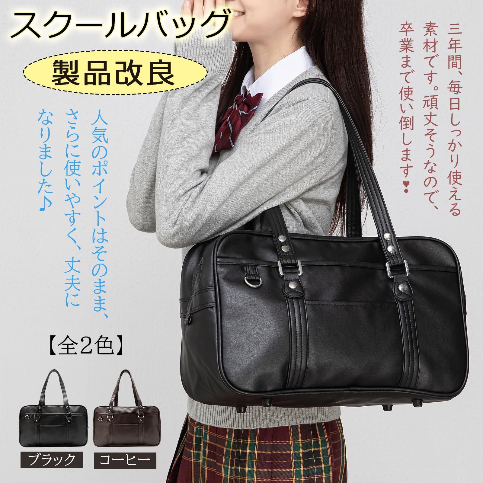 【2022最新】Wowcarbazole スクールバッグ 高校生 女子 スクバ 合皮 大容量 肩紐長め 学生バッグ 通学 軽量 大きめ 男女兼用