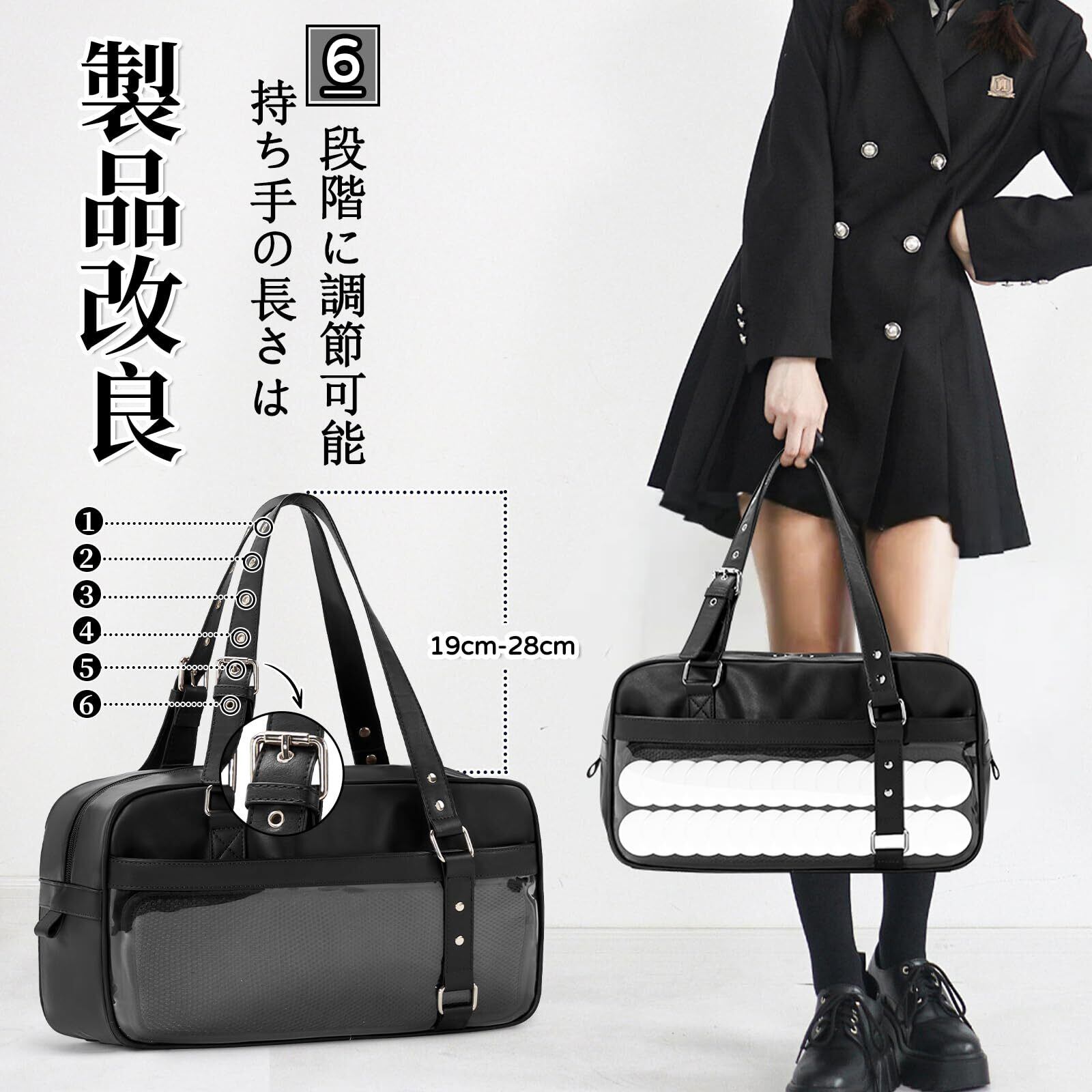 【数量限定】[NEWHEY] 痛バッグ 痛バ スクールバッグ 高校生 合皮 女子 スクバ 黒 大容量 ボスドンバッグ 通学 レディース A4対応 肩紐調節可能 男女兼用 学生鞄 JK 制服バッグ ブラック 茶色