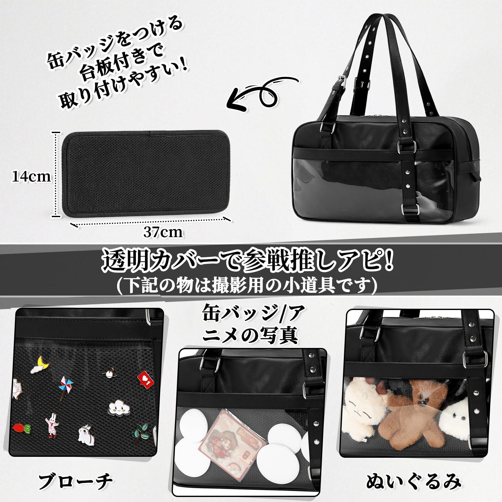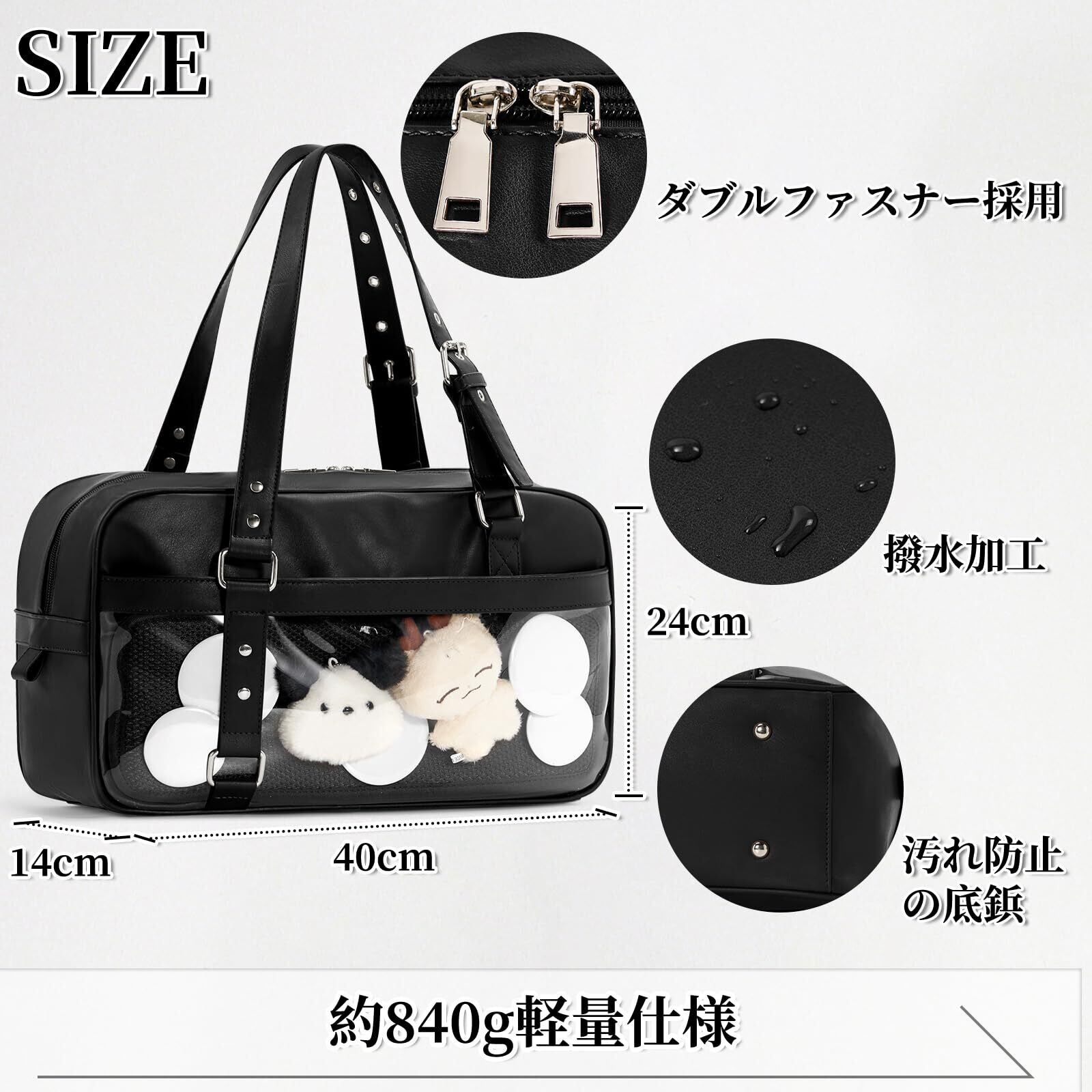 見た目以上の収納力:大人気のトレンドアイテム、痛バッグタイプのスクールバッグです!メインポケットにはA4ノート、教科書、iPad、ペットボトルや折り畳み傘、小物などすっぽり入りますので、通学用バッグとしてバッチリ 日常の必需品をまとめて収納できる大容量のボスドンバッグです。