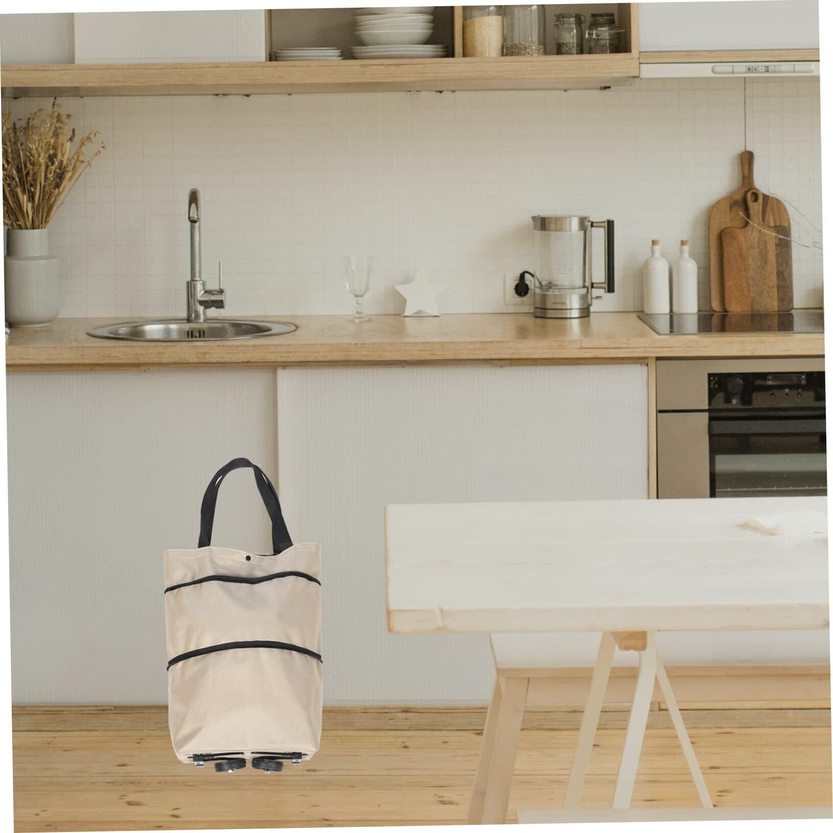 -素材:オックスフォード布、木製折りたたみ式ショッピングバッグ、車輪付き