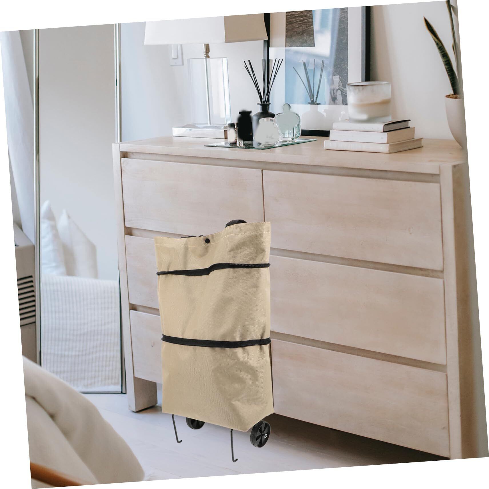 - カラーカーキ 折りたたみ式食料品バッグ 車輪付き
