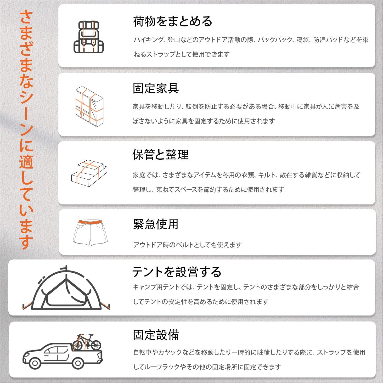 【長さ調整】多機能ラゲッジストラップはサイズを簡単に調整でき、さまざまな荷物だけでなく、ラゲッジバッグ、登山バッグ、家庭用製品の束にも適しています