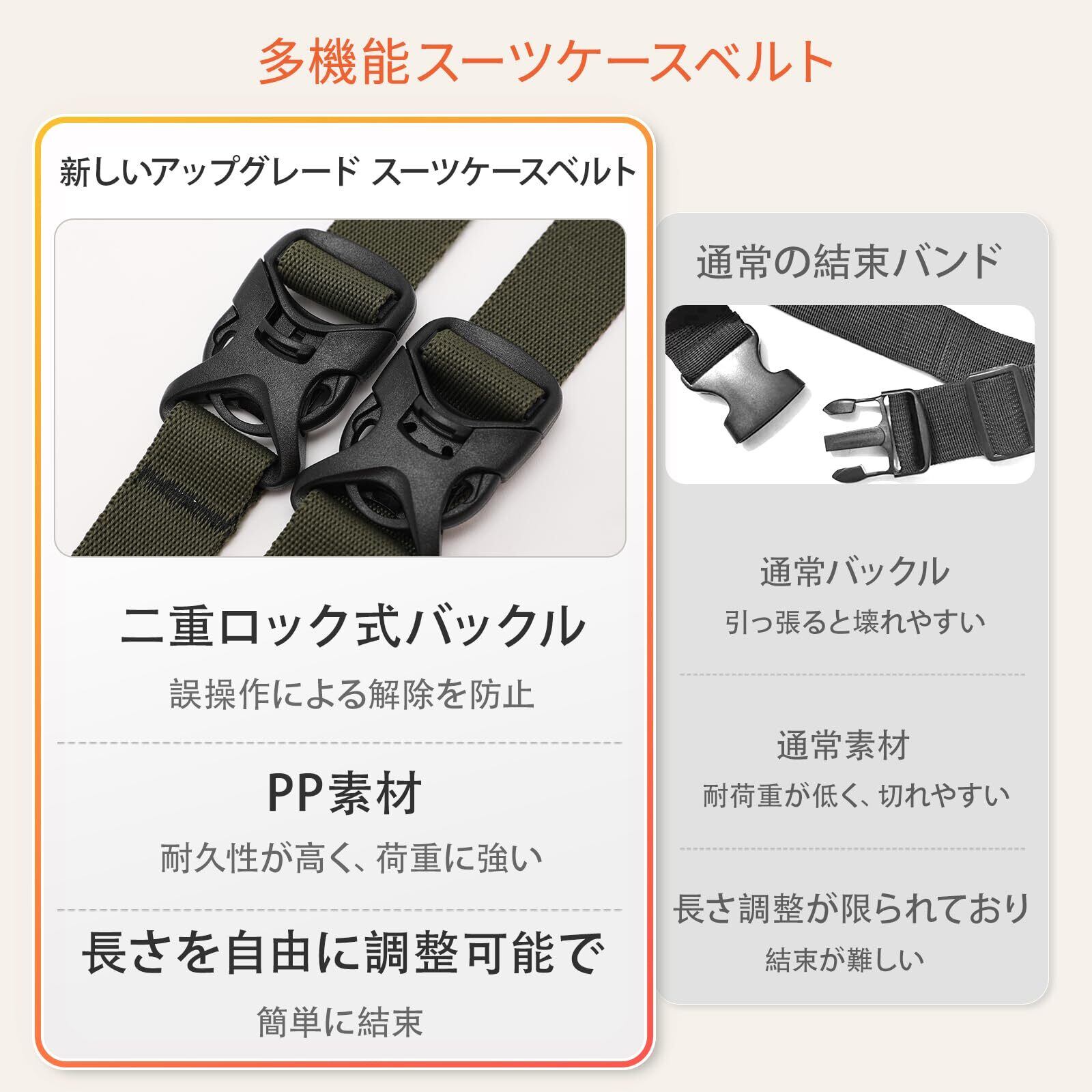 【新春セール】Bee Nesting多機能スーツケースベルト、ダブル保険バックル、調節可能なキャリーケース ベルト、ベアリング重量は約91KGです、旅行便利製品、スーツケース、テント、バックパック、屋外保管、ストラップ掛け、固定および締め付けロープに適しています (アーミーグリーン, M)