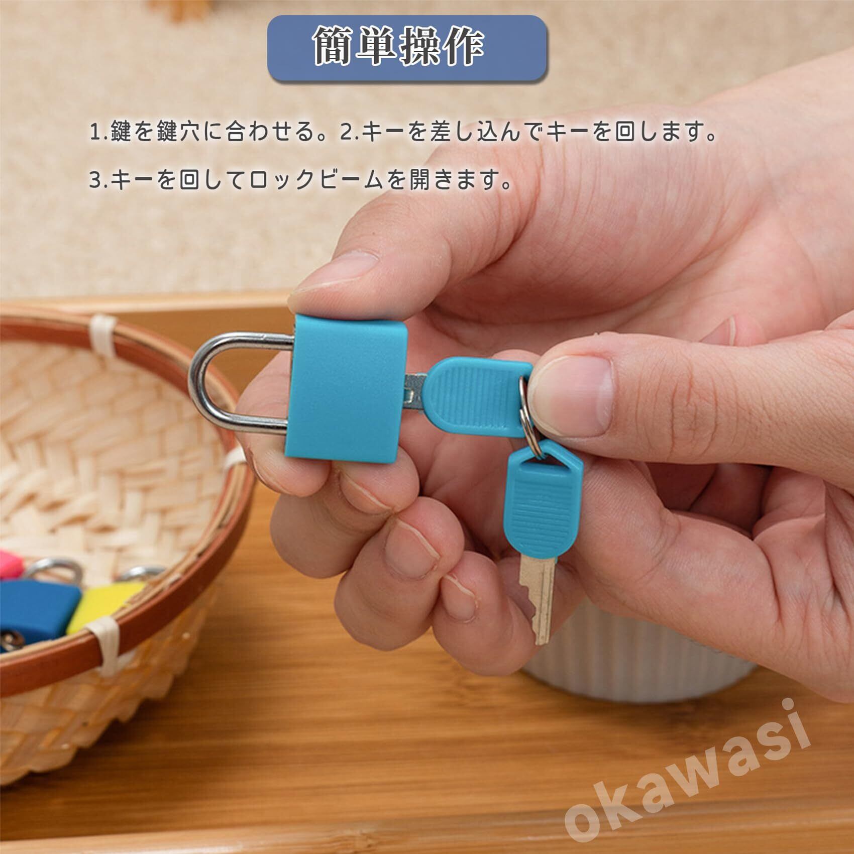 【セット内容】サイズ:約3.5×2.3cm、南京錠4個セット(オレンジ、イエロー、ブルー、ブラック。)