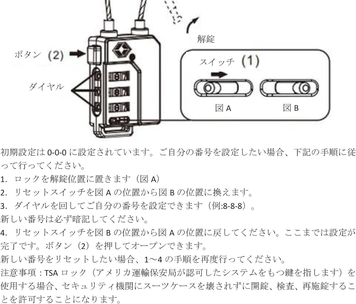 ※ TSA承認済み:TSA容認のセキュリティーロック、空港検査には便利で、荷物の損傷も避けられる