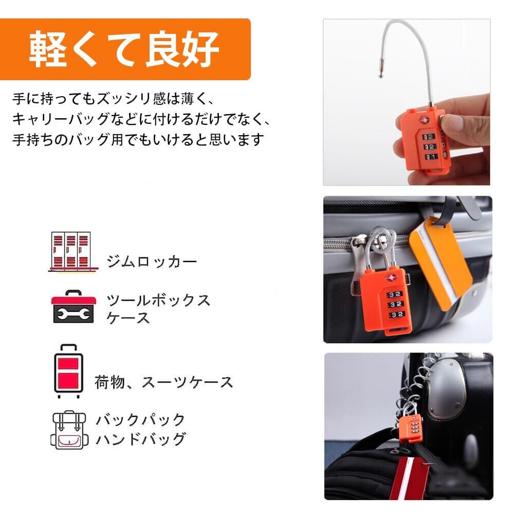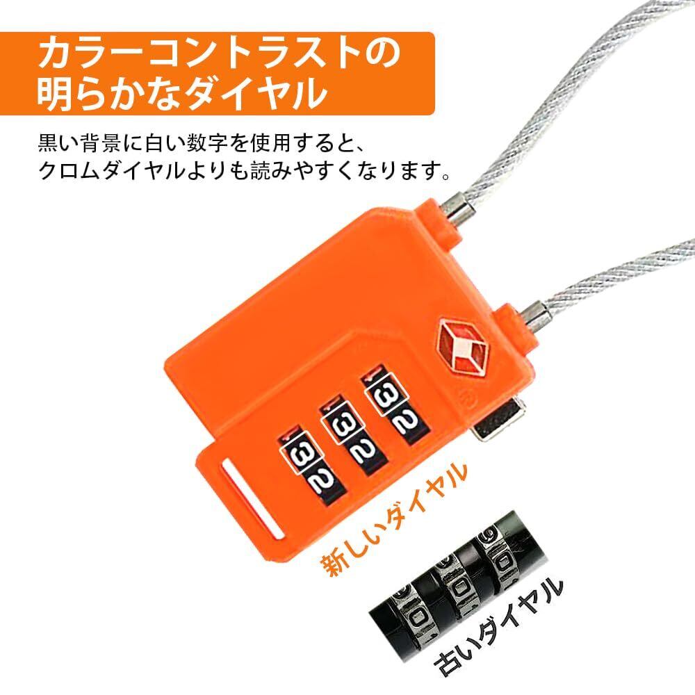 ロック 南京錠 旅行 ダイヤル式 3桁, 小型 ワイヤーロック 暗証番号 荷物、スーツケース、バックパック用 屋外 さびない オレンジ色