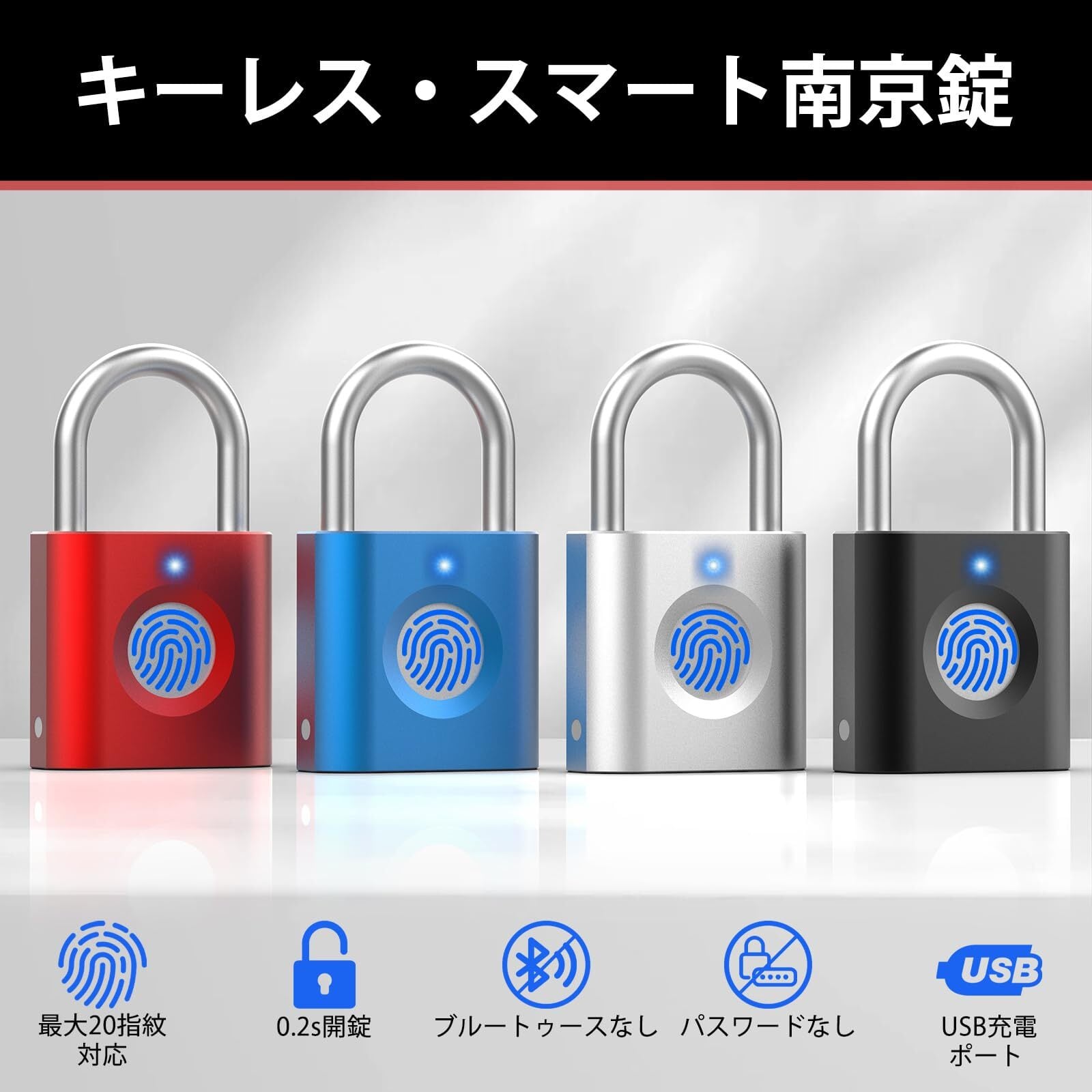 【2022最新】指紋認証 南京錠 鍵はありません 小型 南京錠 ロッカー 錠前 指紋ロック USB充電 スマートロック 指紋 银