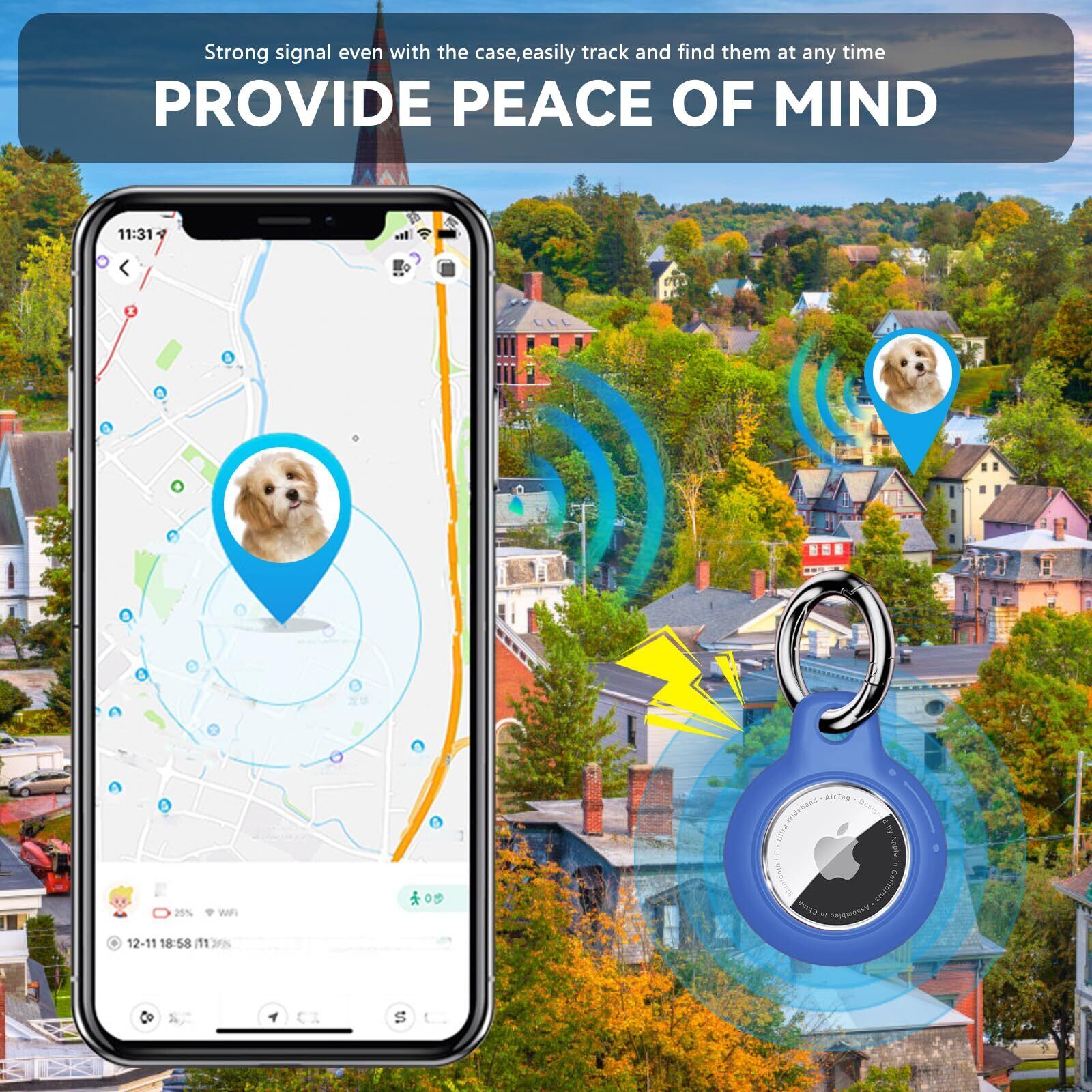Inesore for AirTag 防水 ケース キーホルダー付き、エアタグケース 全面保護 携帯に便利 防振/耐擦傷/耐衝撃性、Airtag キーホルダーは信号に影響がな、車の鍵/バッグ/荷物/財布/子供/自転車/犬猫 に掛ける -あお