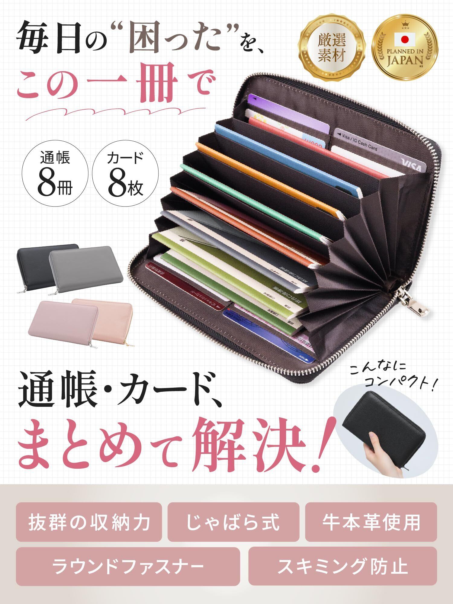 【在庫セール】[boomie] 通帳ケース 【上質本革仕様x第三者機関認証済】 磁気防止 本革 スキミング防止 大容量 通帳16冊収納 ジャバラ 国内検品済 カードケース お薬手帳 パスポートケース 牛革 メンズ レディース (ブラック, M)