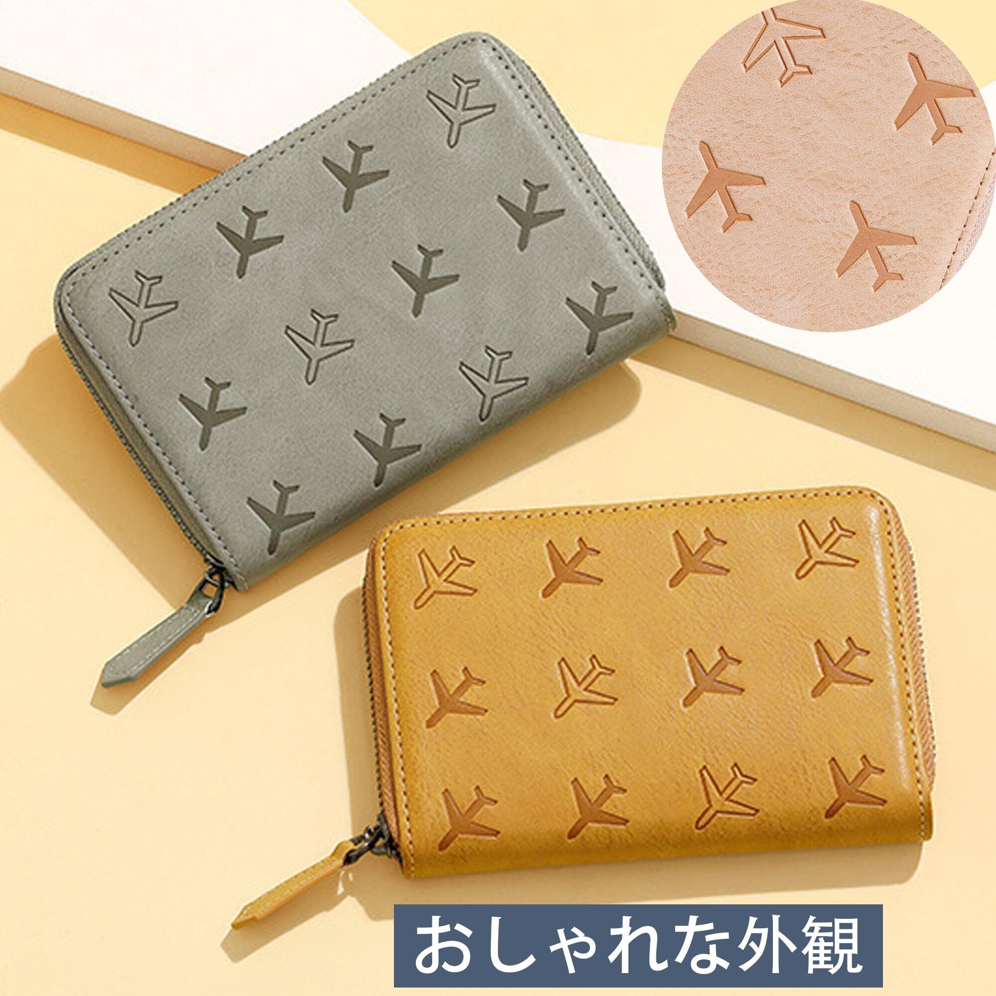【在庫処分】[RenLianyi] パスポートケース スキミング防止 パスポート1冊収納 おしゃれ ファスナー パスポートカバー 財布 一体型 レディース メンズ 軽量 パスポート 航空券入れ カードケース 4枚収納 透明窓付き 高級PUレザー 海外旅行 贈り物 コンパクト グレー