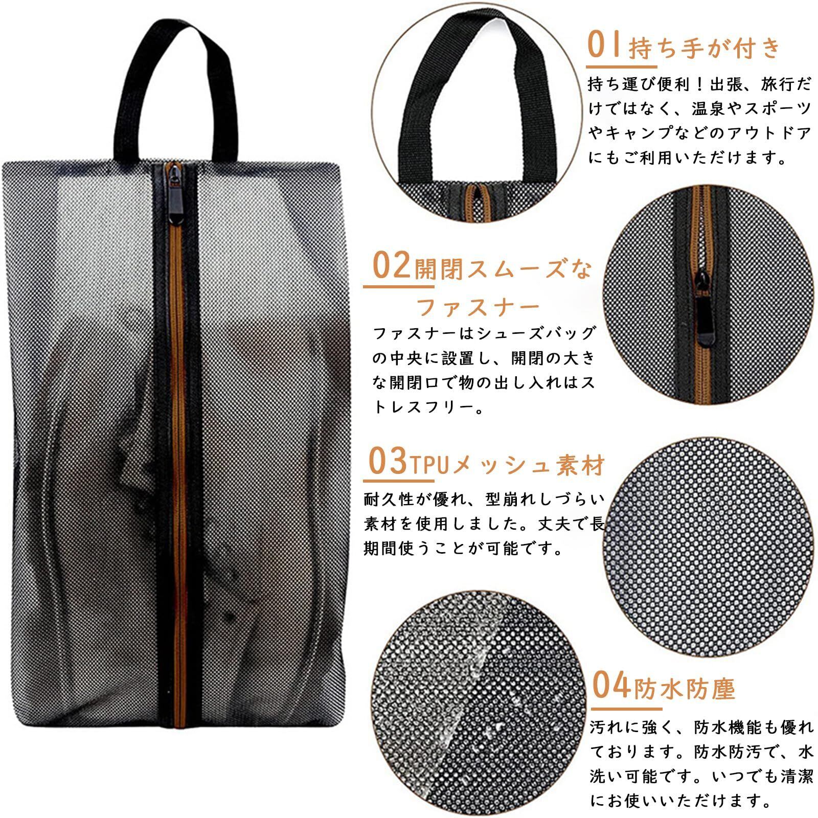 【防水防塵】 シューズケースは全体TPU(熱可塑性ポリウレタン)素材で作られて、防水性と防塵性に優れ、耐久性があり、出張や旅行、スポーツ時に使用する場合、靴をしっかりと保護します。