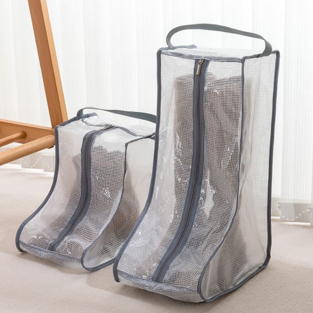 【特価商品】ブーツバッグ シューズケース シューズ袋 靴袋 軽量 防水防臭 半透明 靴入れ ショートブーツ収納 高さ28cm グレー