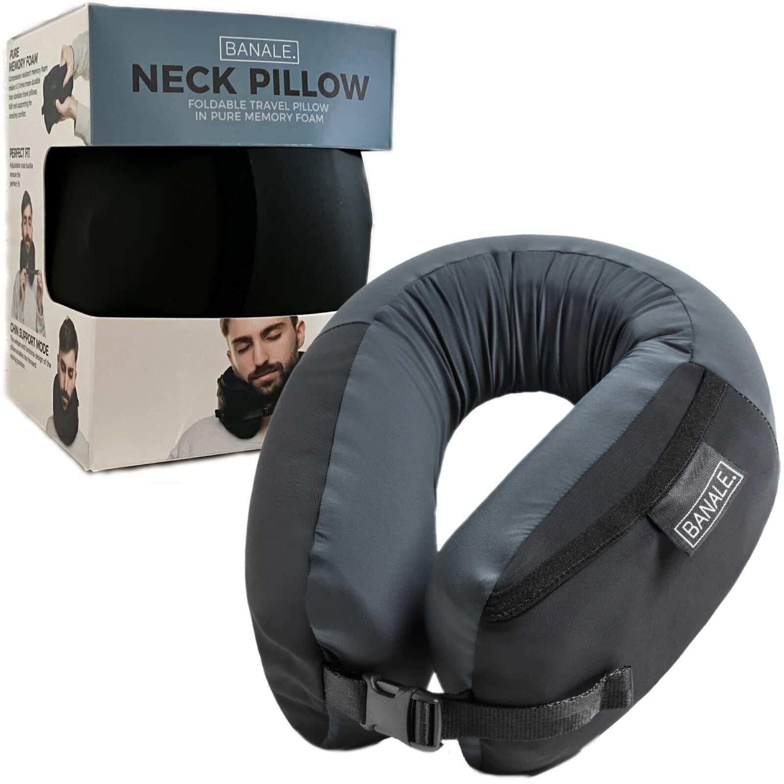 BANALE. バナーレ ネックピロー 携帯枕 トラベルピロー 枕 アウトドアピロー 首枕 旅行 飛行機 機内 車 低反発 クッション 空気不要 エアー不要 コンパクト (ネックピロー, ダークグレー)