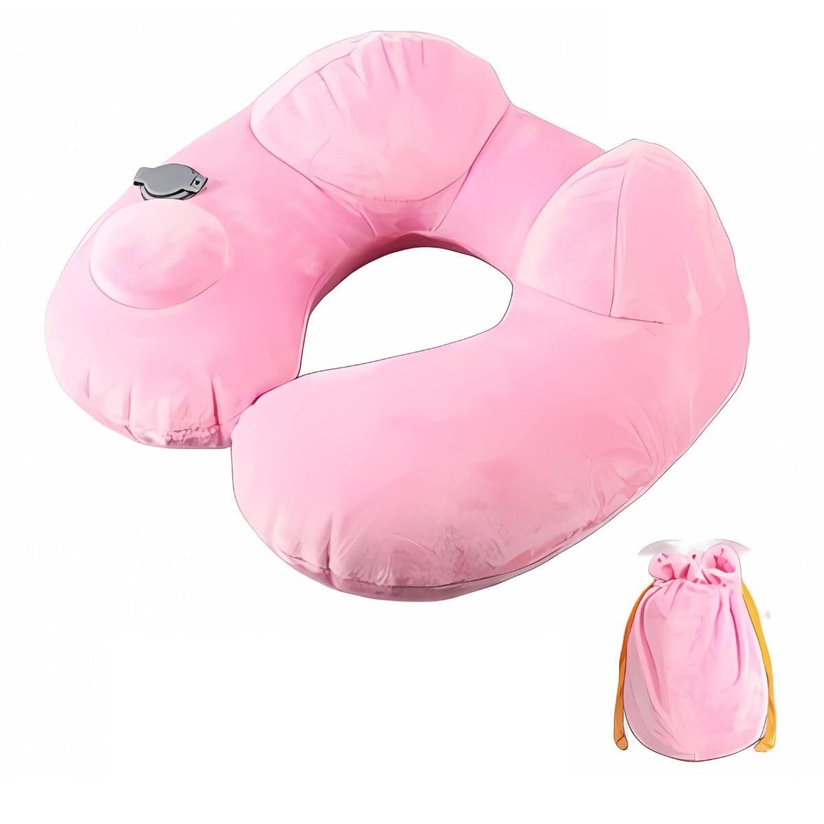 [Kouizam] 国内ブランド ネックピロー 首枕 旅行 飛行機 空気枕 携帯枕 トラベル アウトドア 夜行バス 修学旅行 林間学校 防災 ポンプ式 衛生な手押しポンプ U型 バス オフィス エアピロー クッション 便利グッズ 収納袋 洗えるカバー (ピンク)