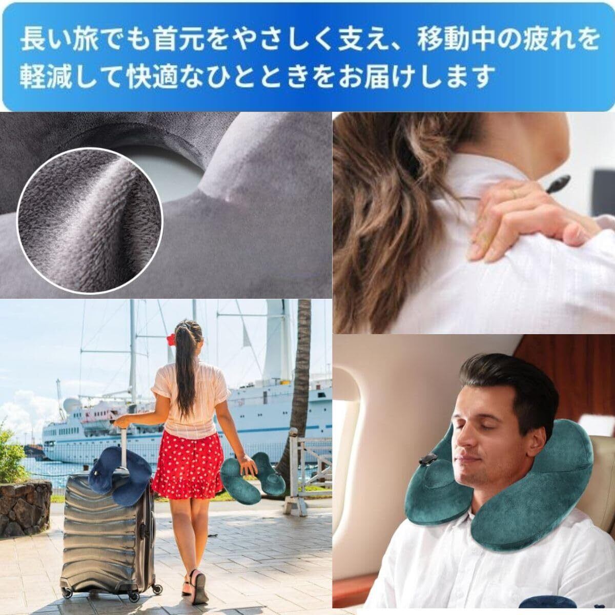 【手押しで簡単膨らみ】U字型エアークッション・ピロー手押しボタンで簡単に膨らませることができます。このネックピローは、適切な膨らみになるまで、下部にあるボタンを繰り返し押して膨らませてください。