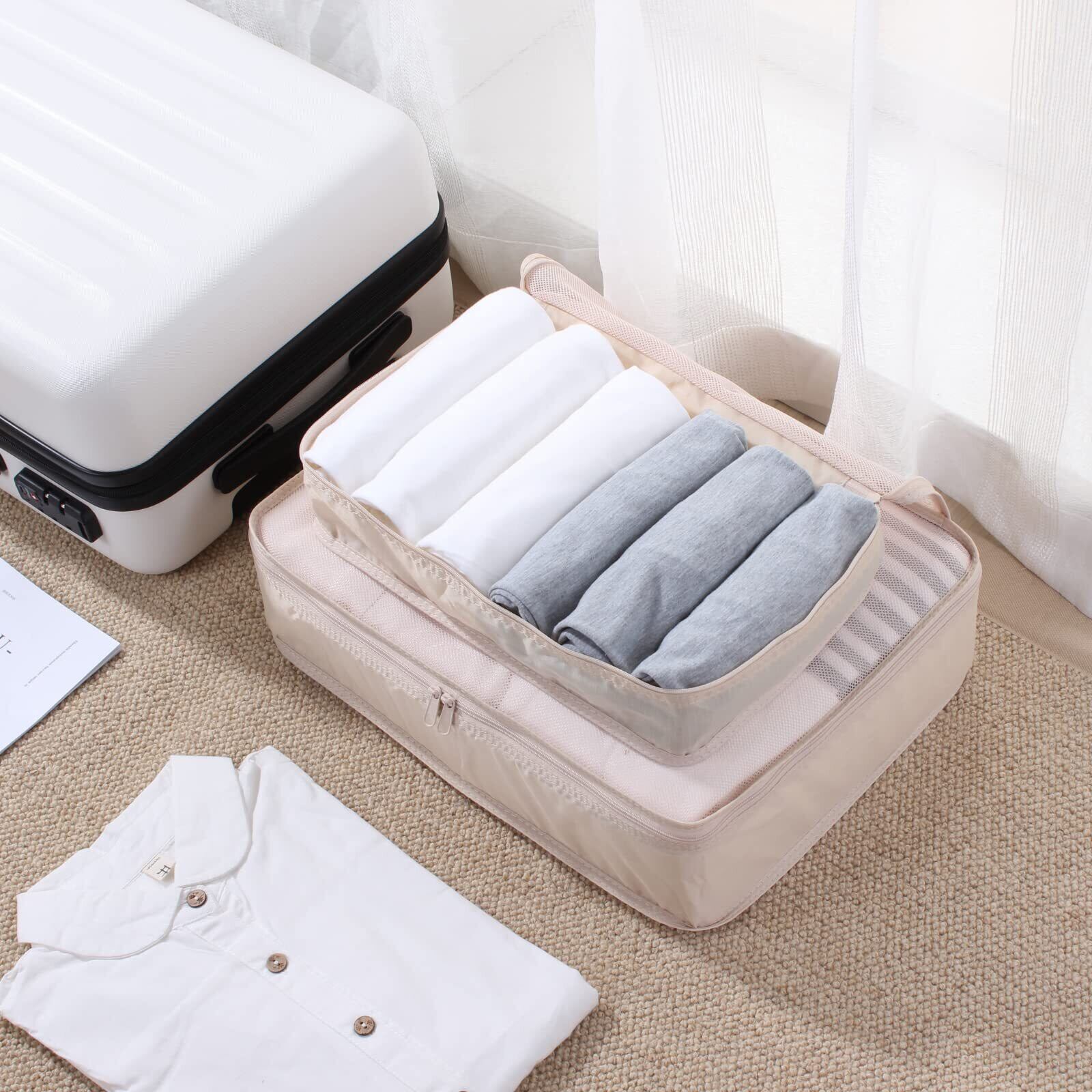 【コンパクト&収納便利】使わない時はメッシュポーチにまとめてコンパクトに収納可能。衣類や化粧品、洗面用具、下着、小物、スリッパなど必要なものをこのセットだけで整理できます。
