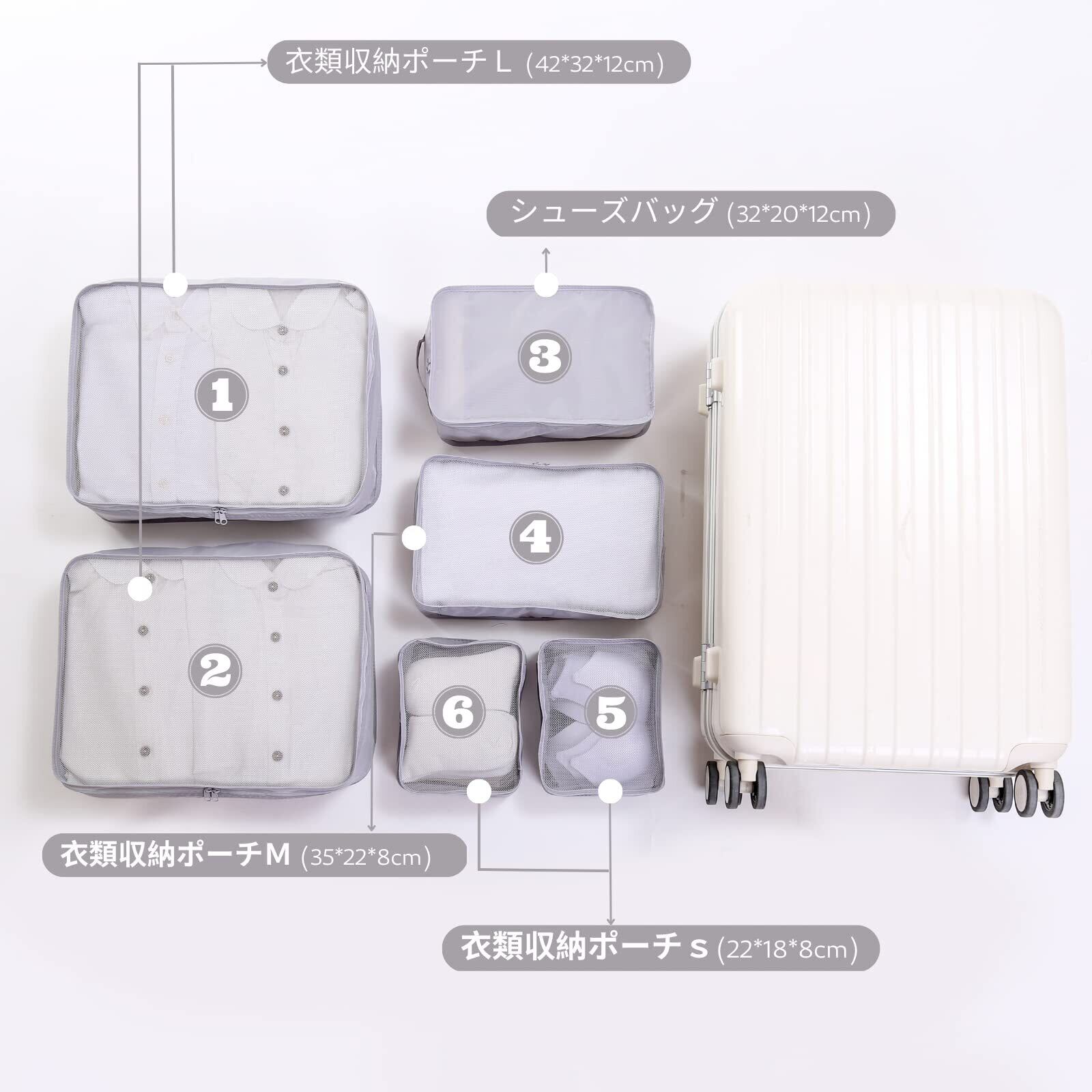 TIANZONG トラベルポーチ パッキングポーチ アレンジケース 6点セット 大容量 超軽量 出張 旅行 便利グッズ 下着収納キューブ 衣類収納 鞋袋 (グレー)