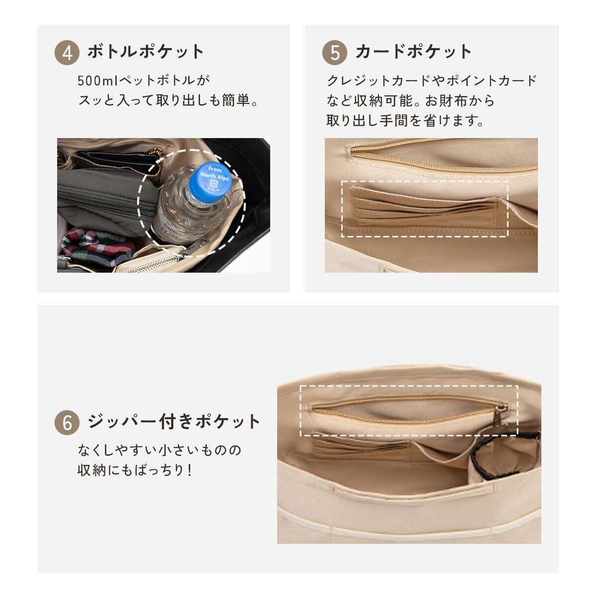 [mujina] バッグインバッグ 軽量 ナイロン 自立 トートバッグ用 小さめ 大きめ リュック 横型 仕切り 多機能