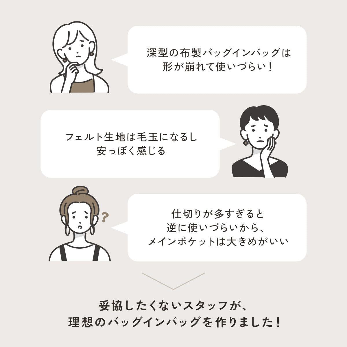 【サイズ・フィット感】 3サイズ展開(L/M/S)で、縦型バッグやトートバッグにも対応。マチ付き設計で、大容量ながらもバッグにフィット。男性用のバッグにも最適です。