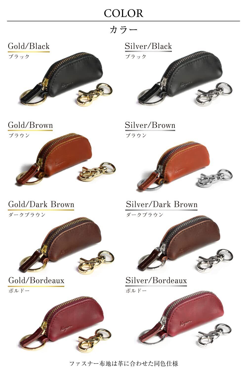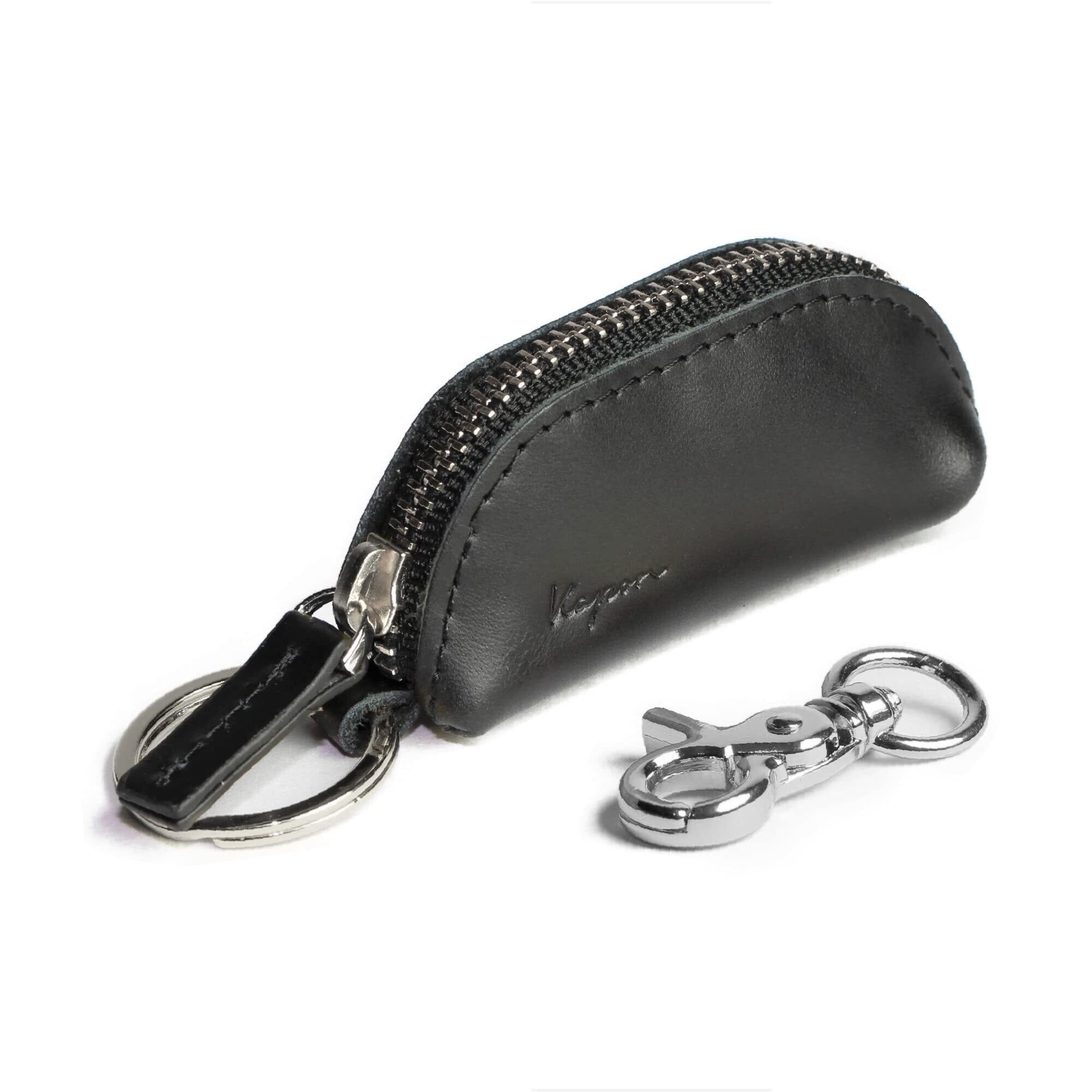 Kapon 小銭入れ 極小 本革 コインケース 本皮 YKKファスナー 500円玉も余裕 メンズ レディース キーホルダー カラビナ (シルバーファスナー/ブラック)