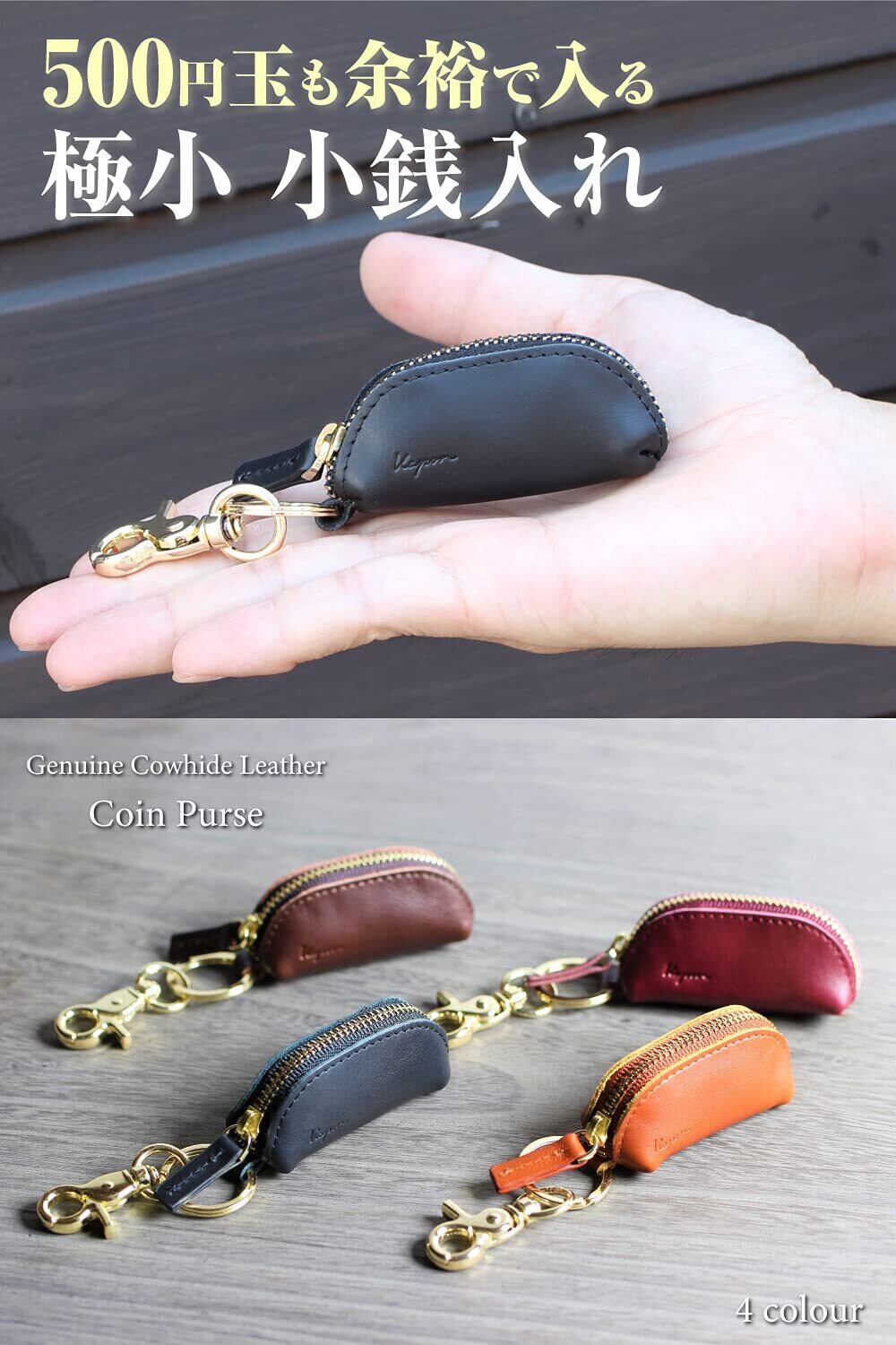 【数量限定】Kapon 小銭入れ 極小 本革 コインケース 本皮 YKKファスナー 500円玉も余裕 メンズ レディース キーホルダー カラビナ (シルバーファスナー/ブラック)