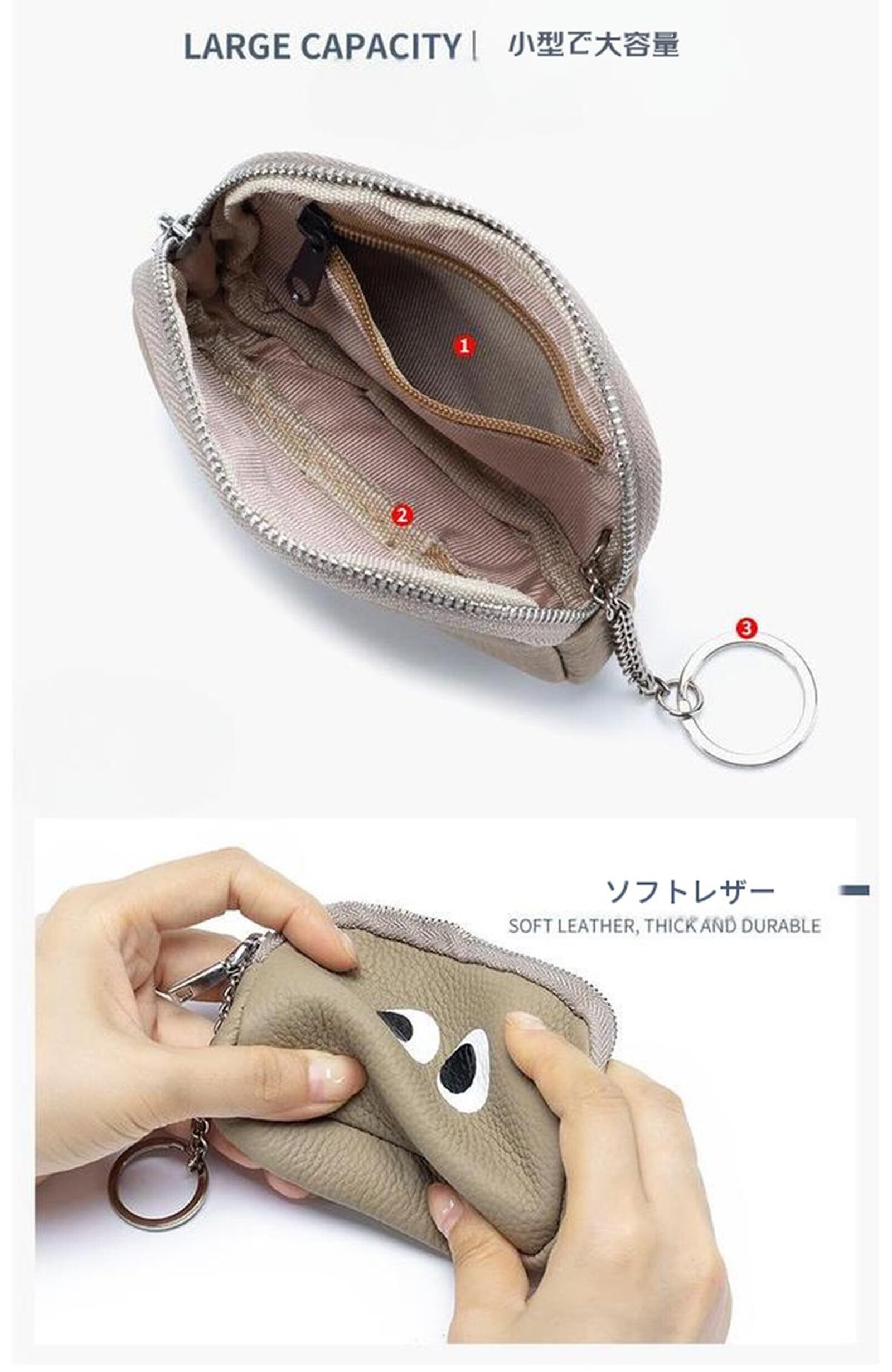 LOHGOU 本革ミニコインケース 可愛い小銭入れキーホルダー付き 小さな小銭入れ レザーコインケース 軽量 アクセサリーバッグ