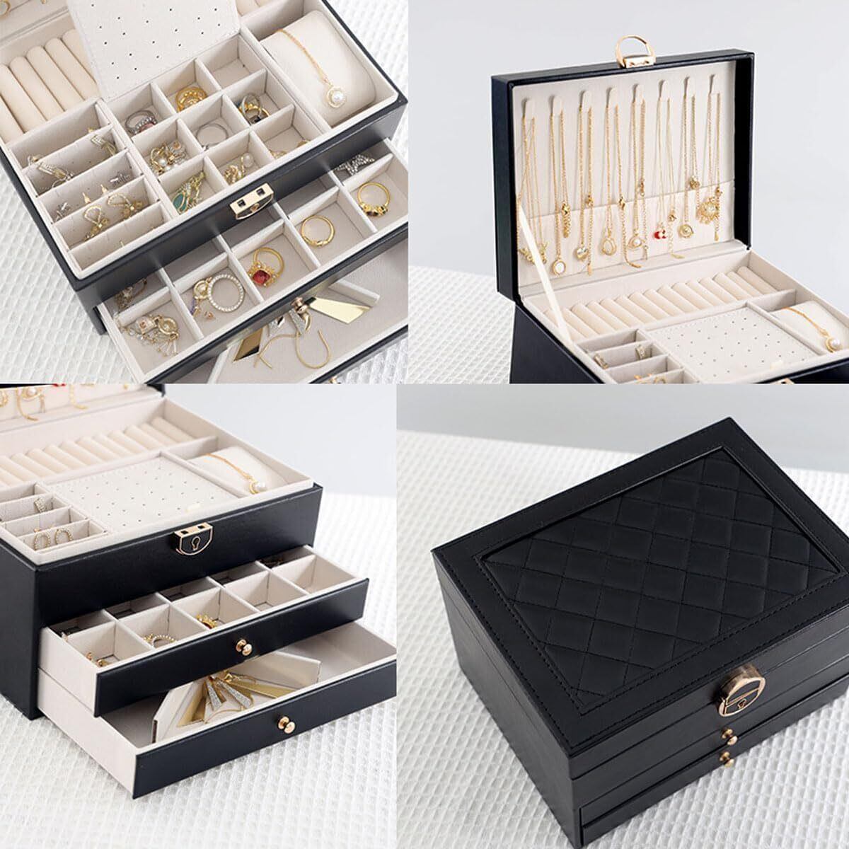 ジュエリーボックス 大容量 アクセサリーケース 3層 鍵付きアクセサリー 収納 取り外し可能 ピアス入れ アクセサリー入れ ピアス イヤリングケース jewelry box organizer プレゼント記念日 誕生日 女性用(黒)